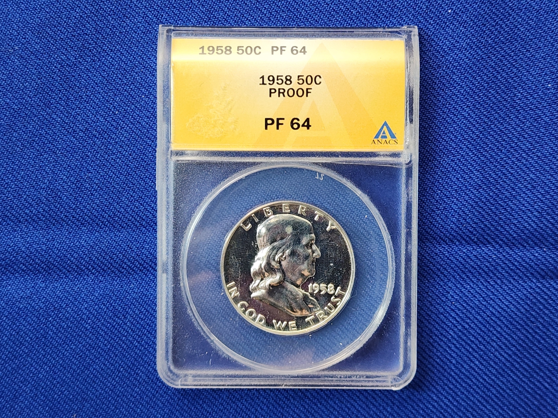 1958 Silver Franklin Half Dollar Proof Graded PF 64 by ANACS