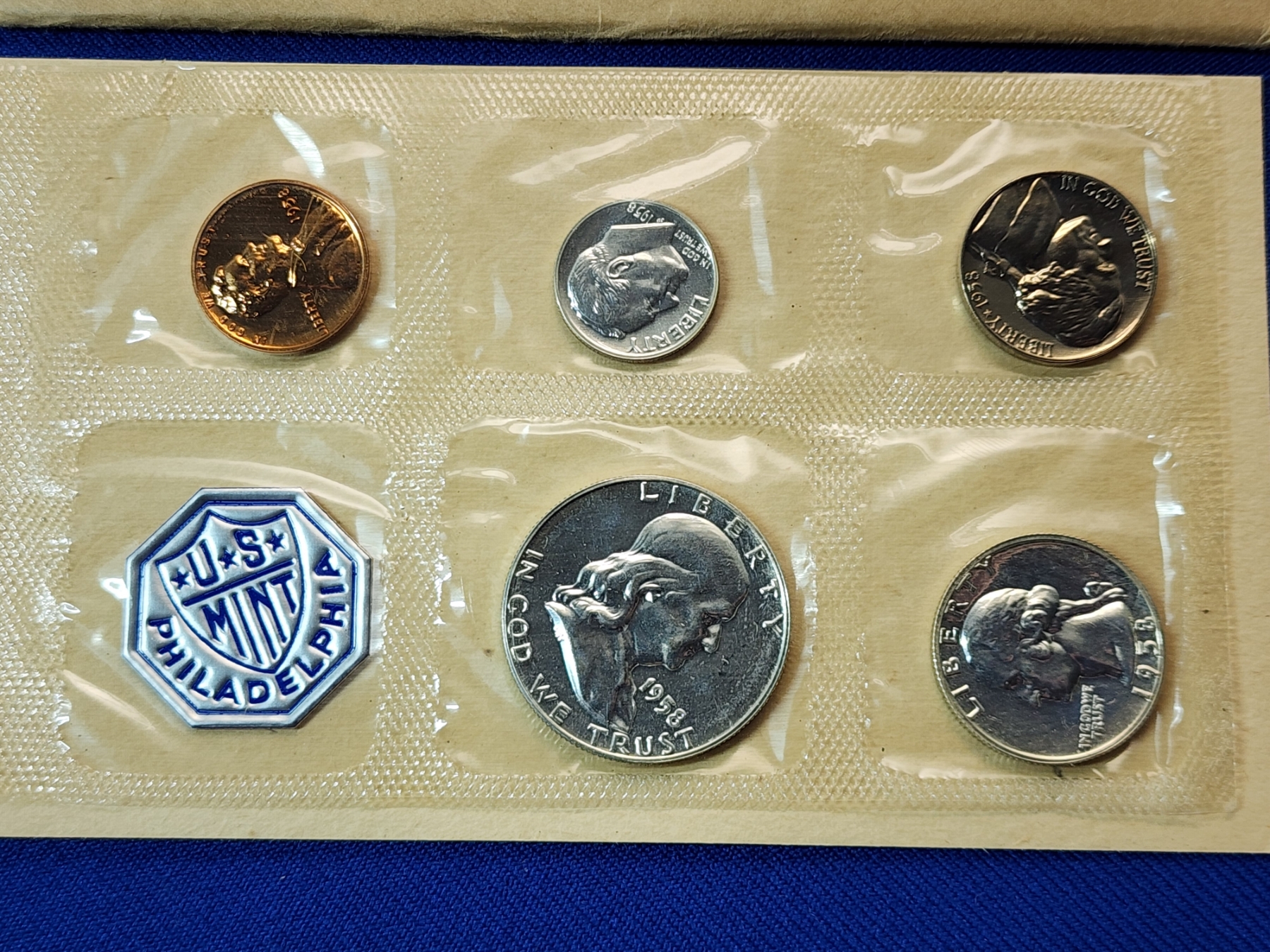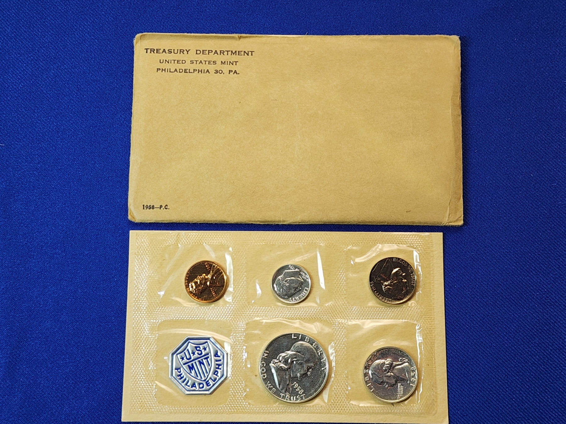 1958 U.S. Silver Mint Proof Set, 5 Coins w/ Original Envelope