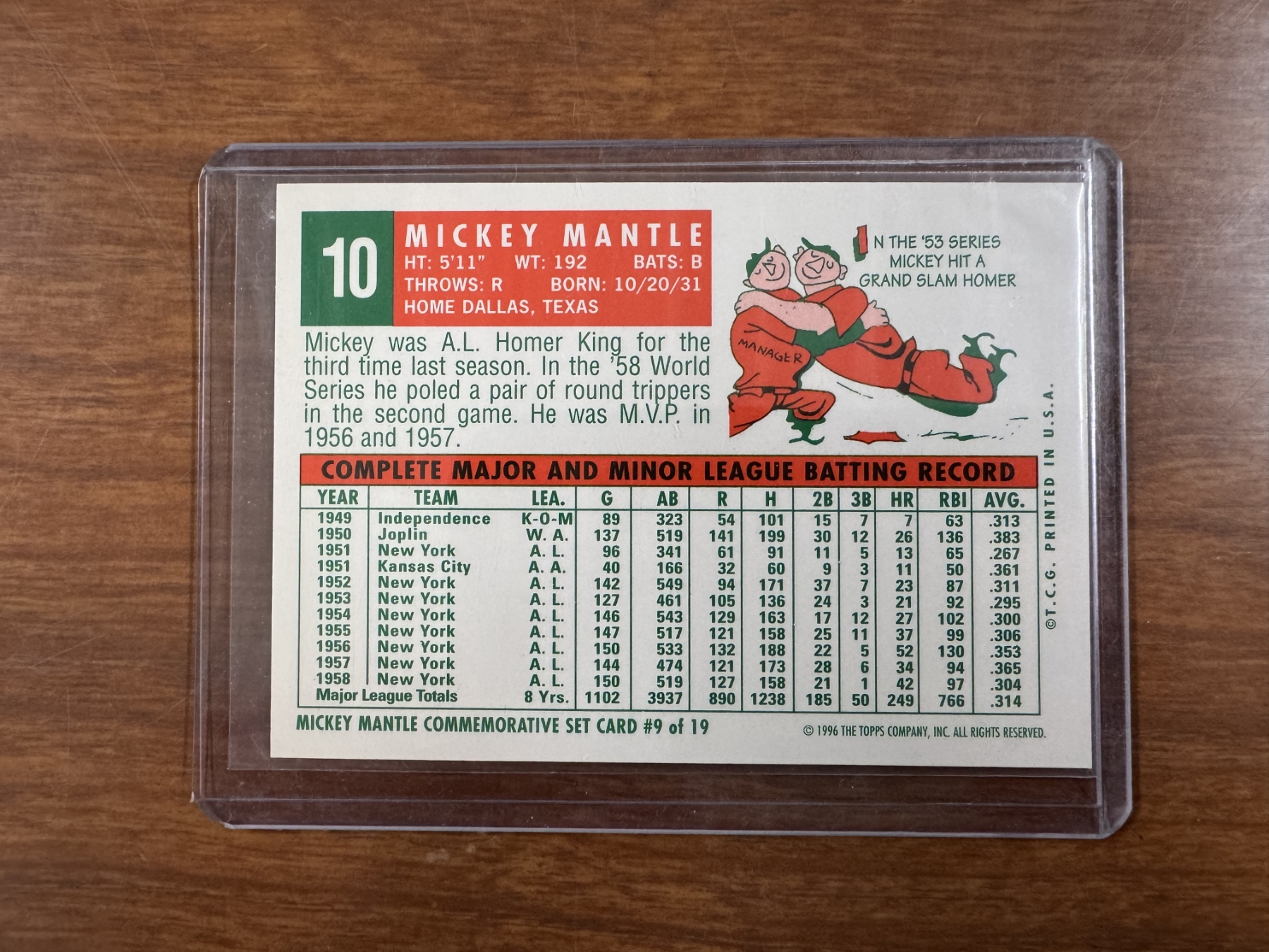 1959 Topps Mickey Mantle New York Yankees Archive Baseball Card - Mint Condition