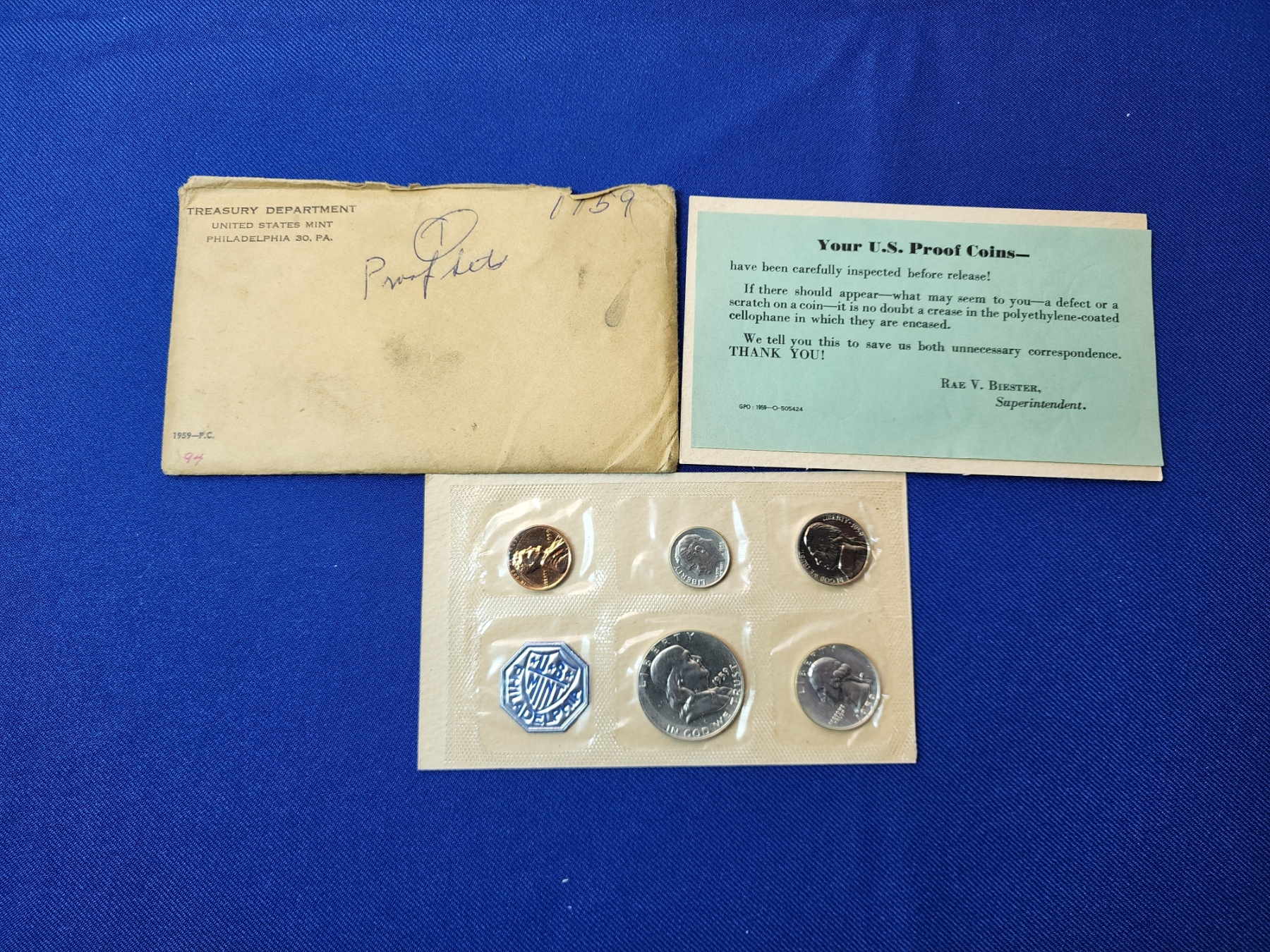 1959 U.S. Silver Mint Proof Set, 5 Coins w/ Original Envelope