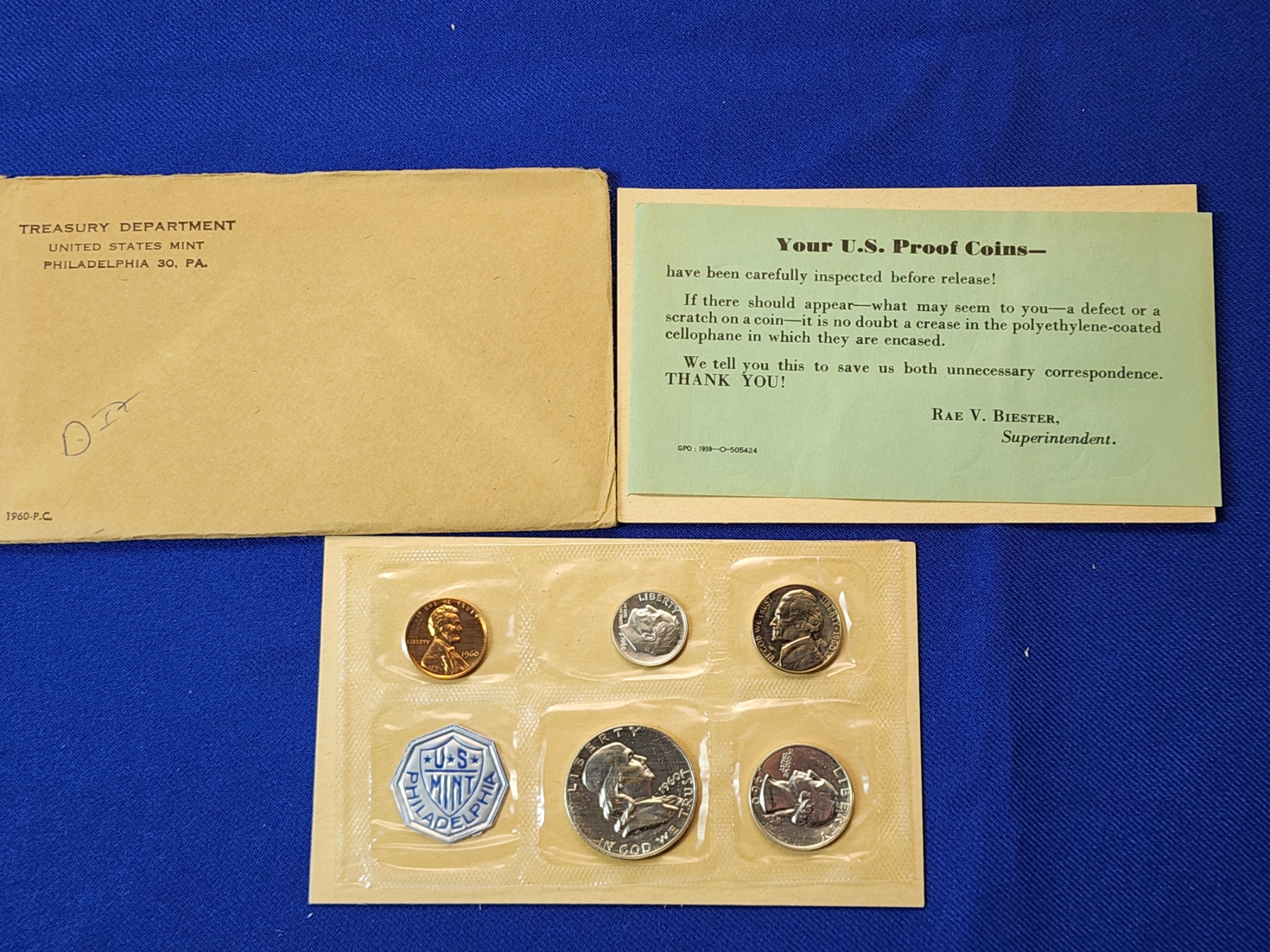 1960 U.S. Silver Mint Proof Set, 5 Coins w/ Original Envelope