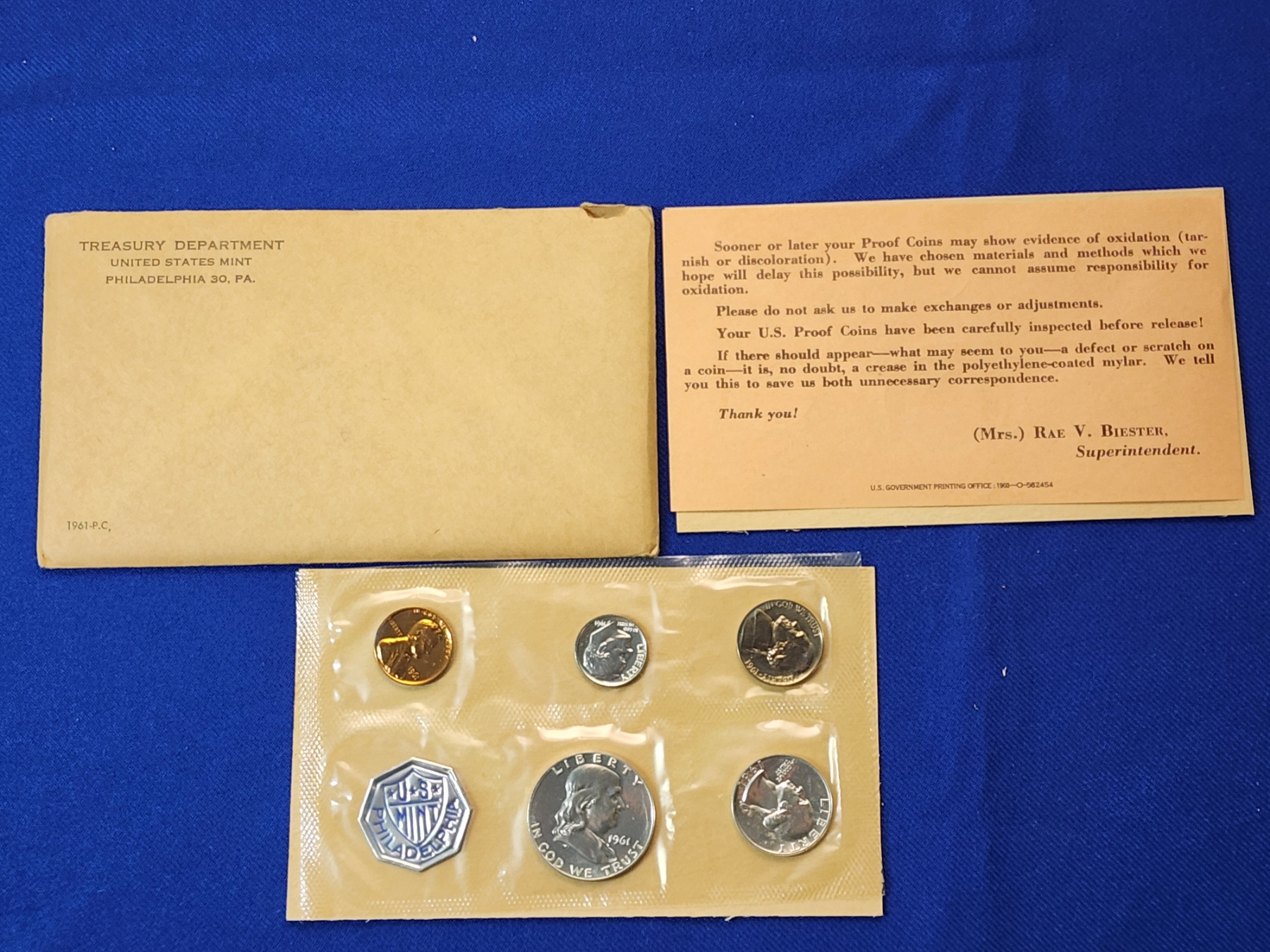 1961 U.S. Silver Mint Proof Set, 5 Coins w/ Original Envelope