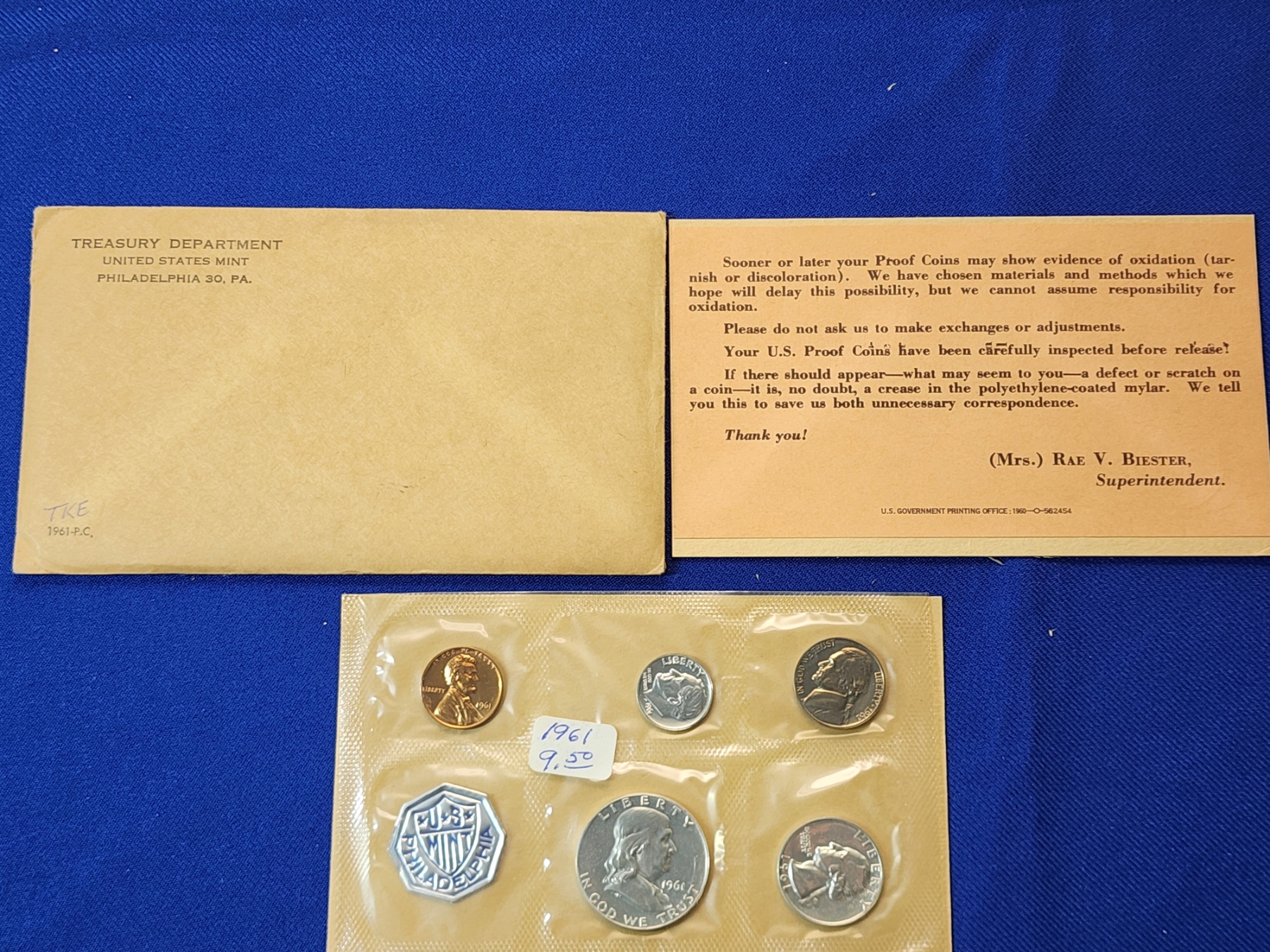 1961 U.S. Silver Mint Proof Set, 5 Coins w/ Original Envelope