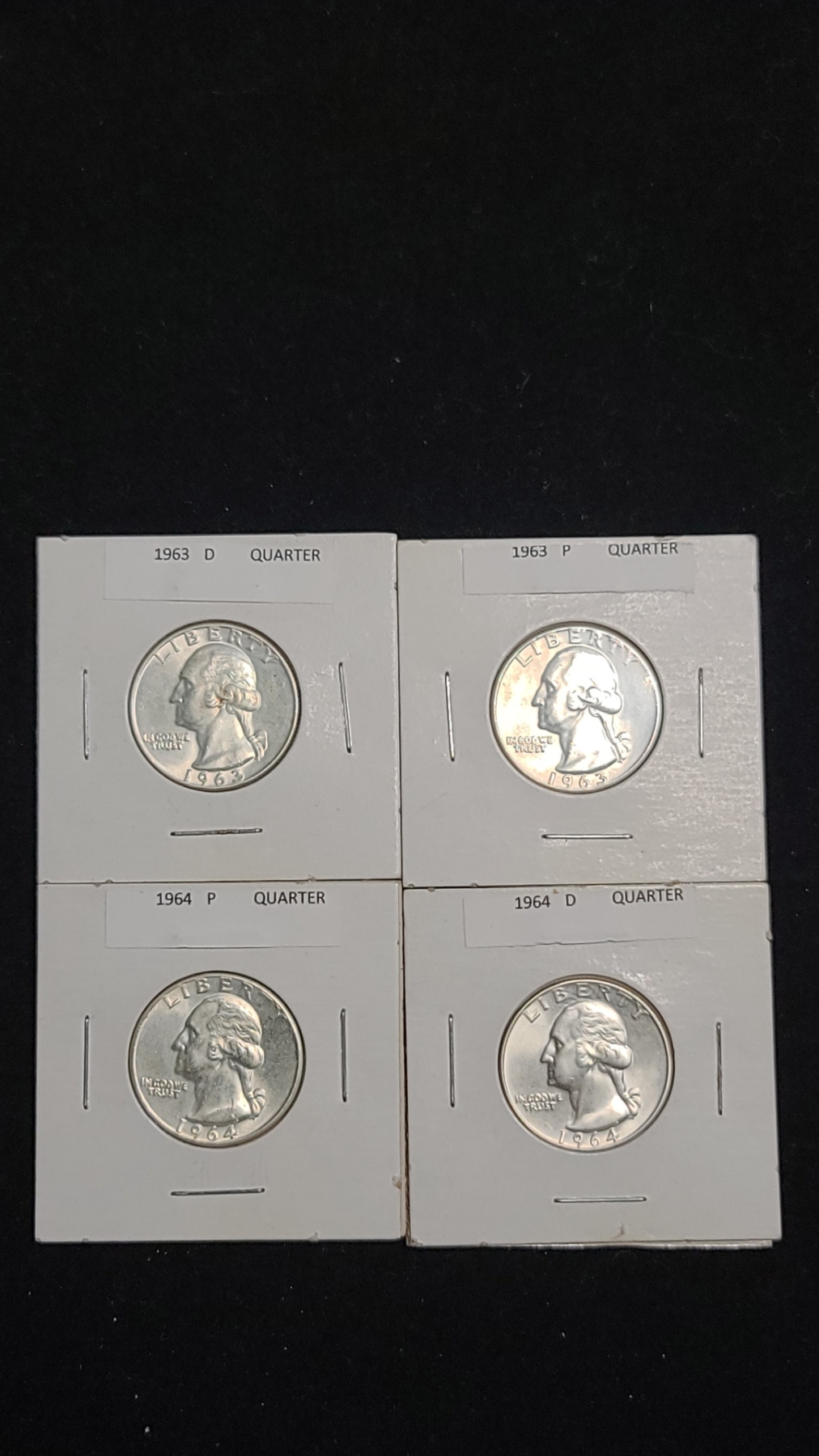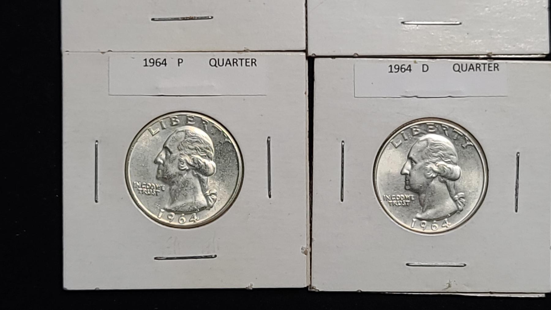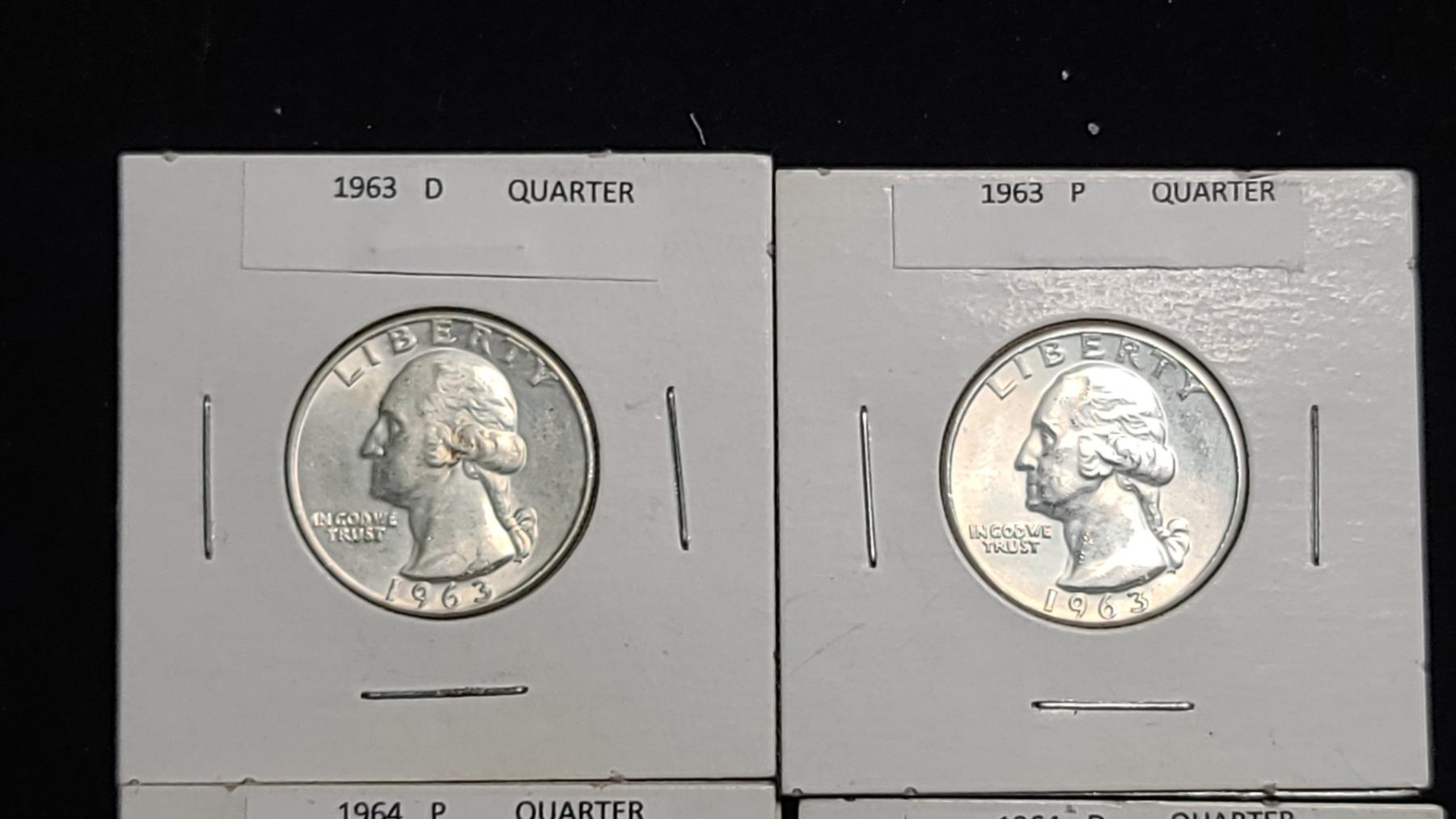 1963-D, 1963-S, 1964-P & 1964-D 90% Silver Washington Quarters - Face Value: $1.00