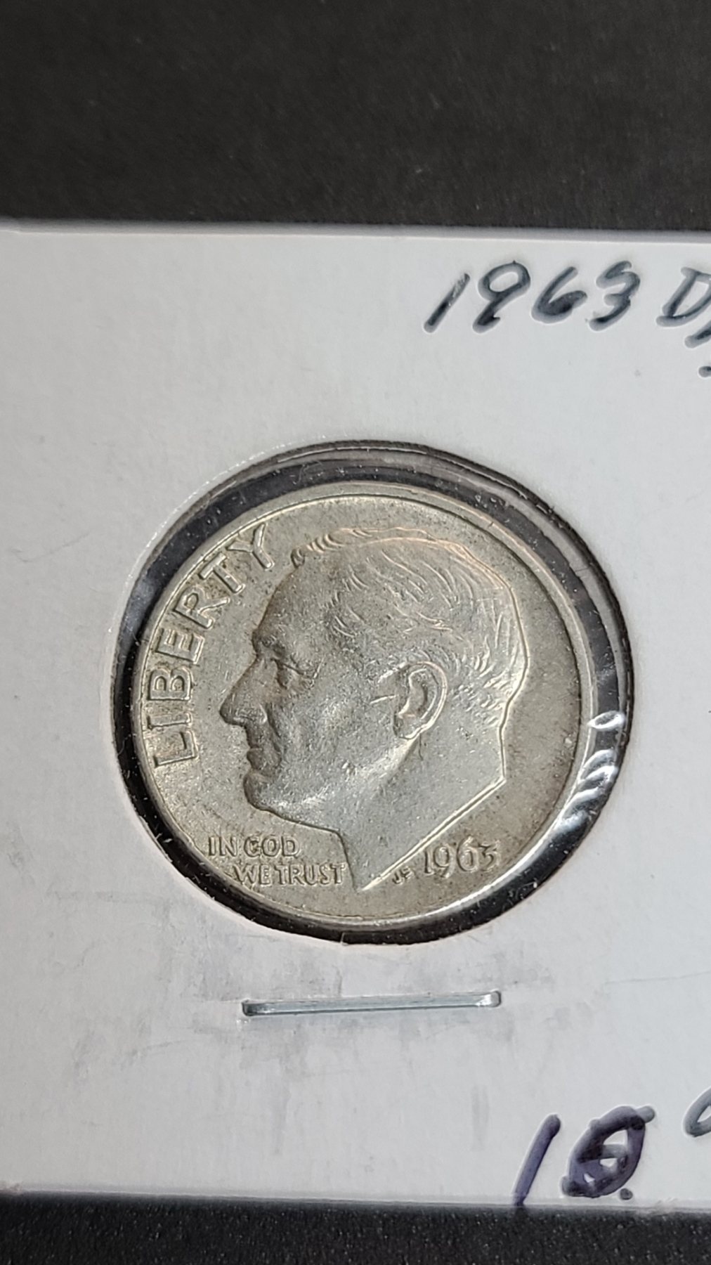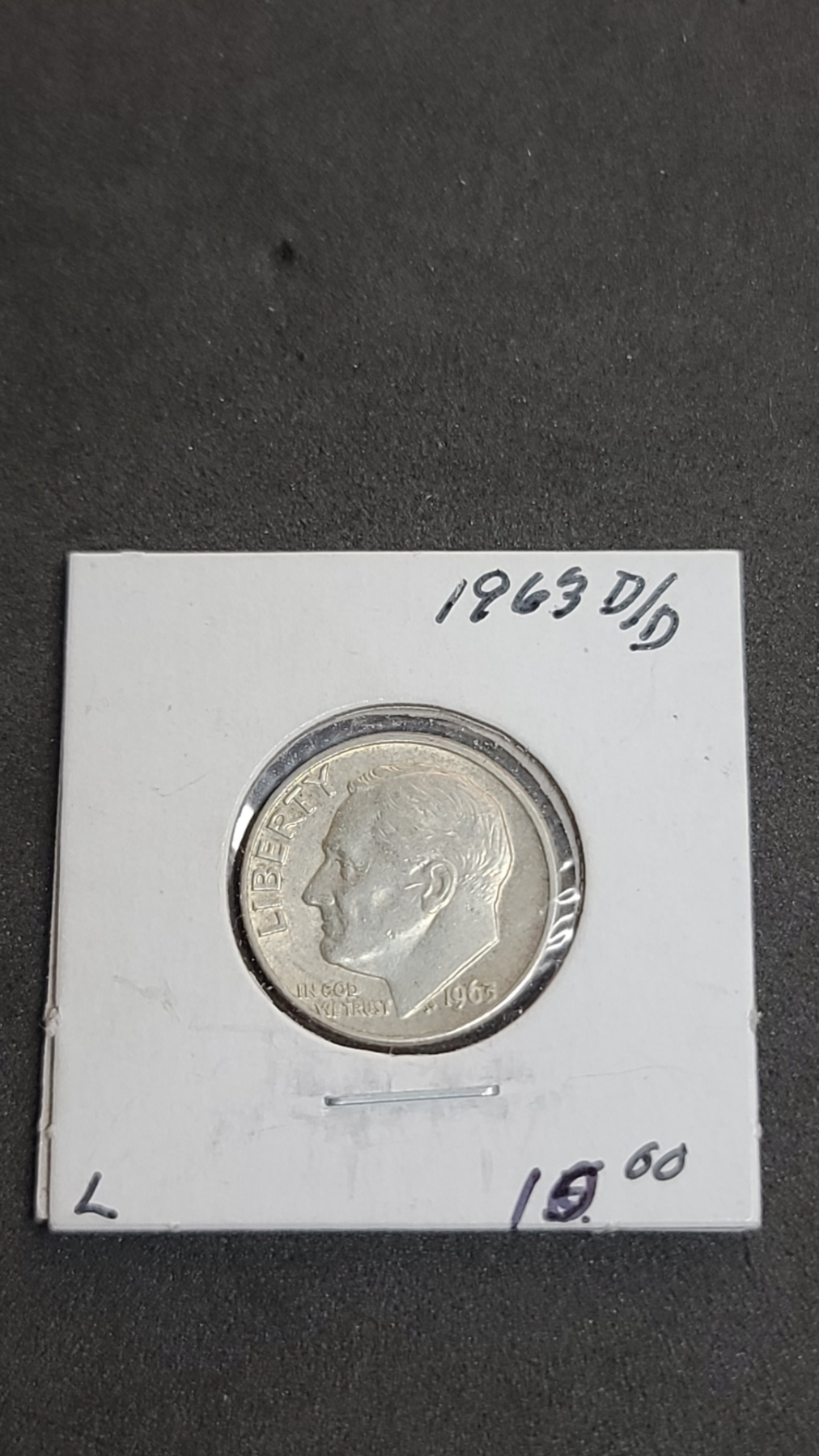 1963 D/D 90% Silver Roosevelt Dime In Coin Holder
