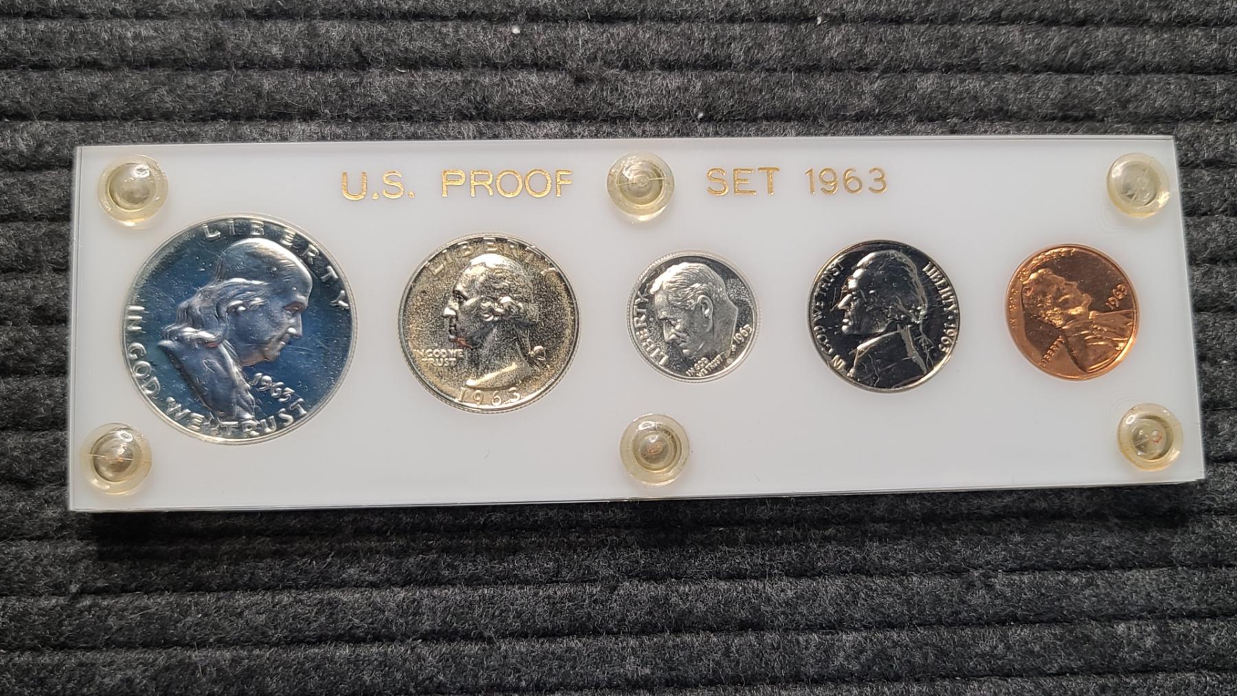 1963 U.S Silver Proof Set In Acrylic Display Face Value .85 Cents Is 90% Silver