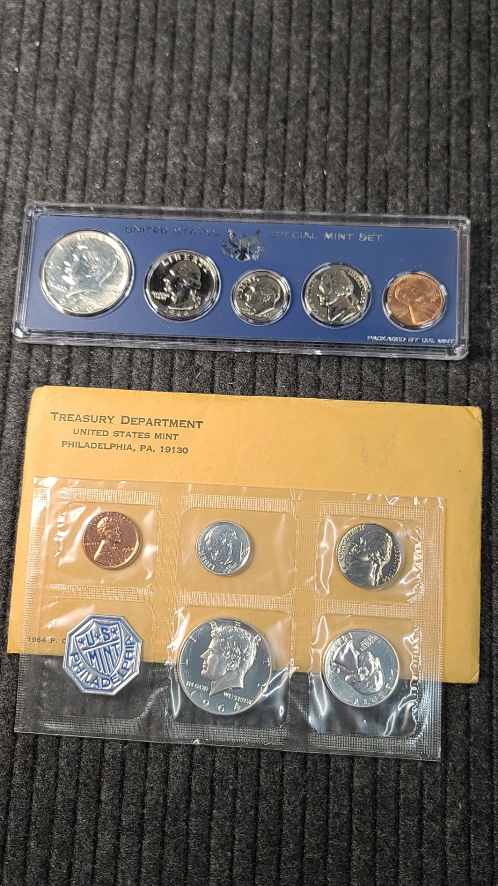1964-P Treasury Dep. With 90% Silver US Mint Coin Set - 1966 United States Special Mint Set With 40% Silver Kennedy Half Dollar
