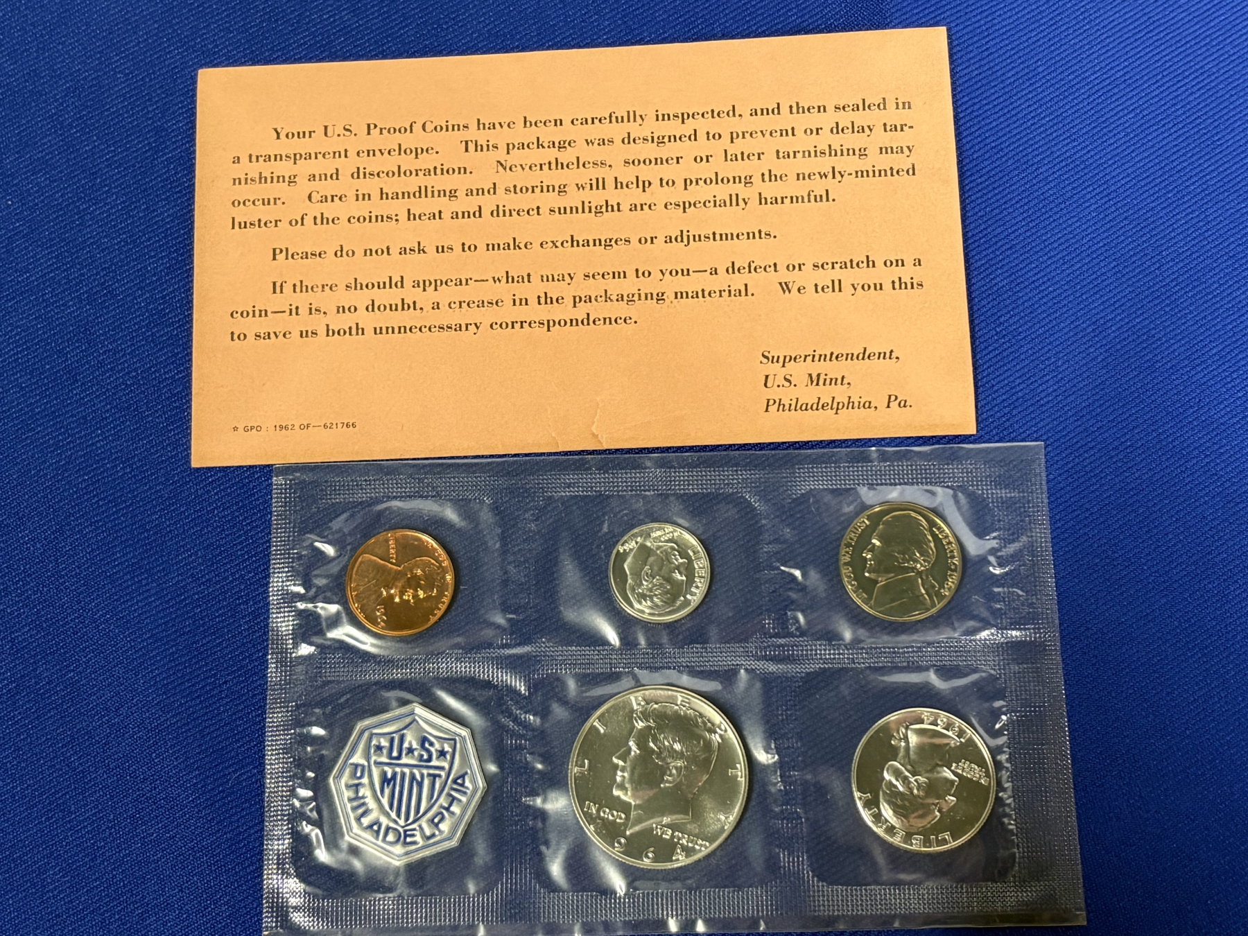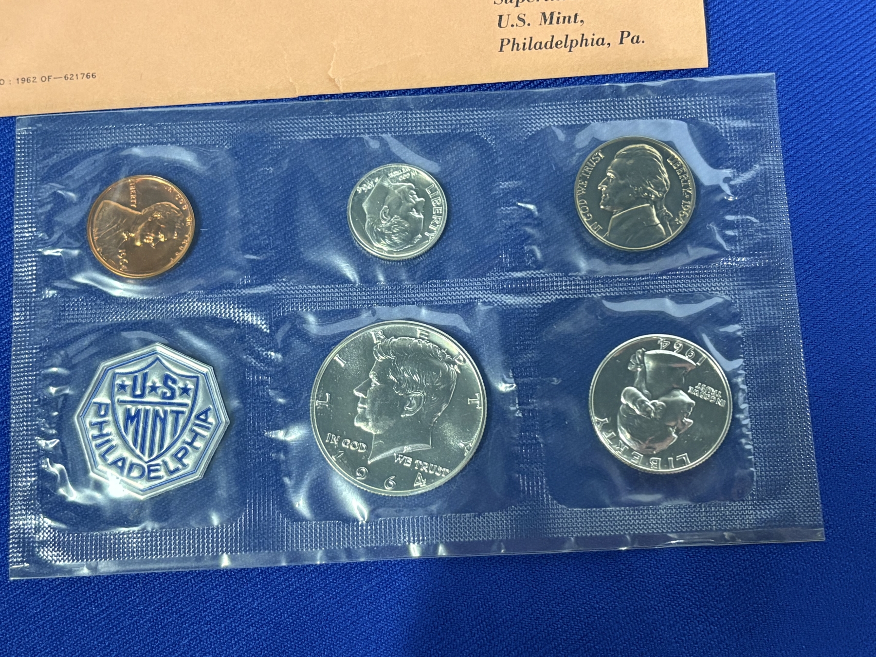 1964 Proof Set - 90% Silver Includes Silver dime, Silver quarter, and Silver half dollar - Also Includes Penny and Nickel