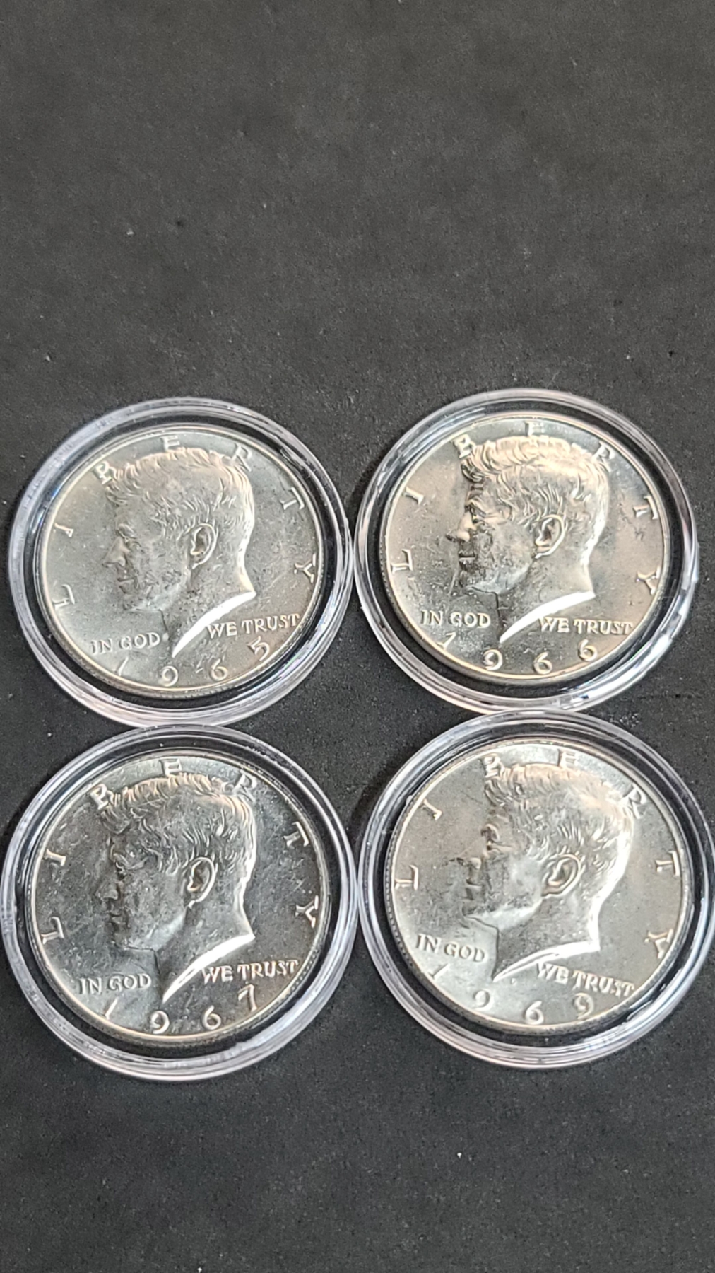 1965, 1966, 1967, 1969-D 40% Silver Encapsulated Kennedy Half Dollars - Face Value: $2.00