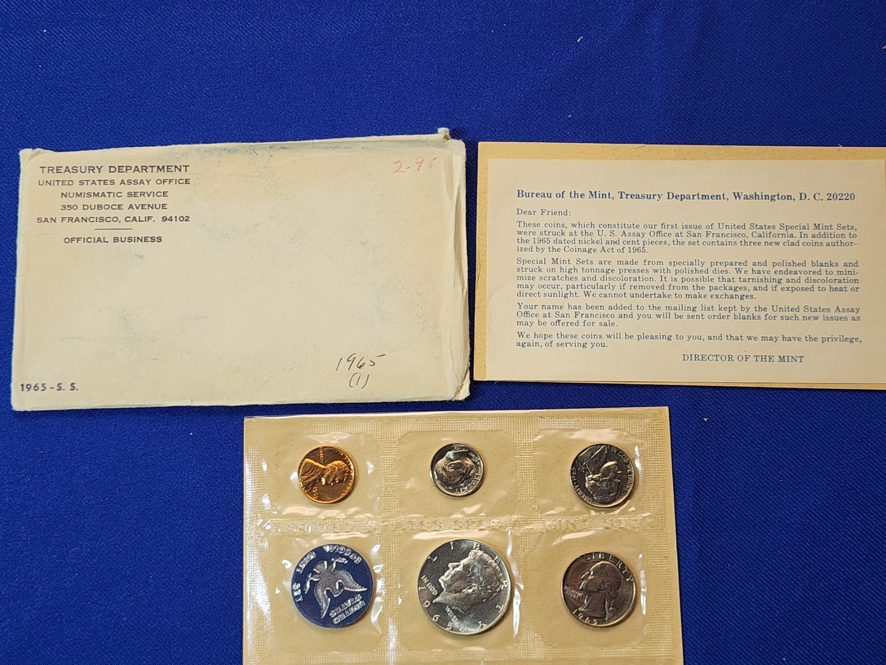 1965 Special Mint Set, 5 Coins Including 40% Silver Kennedy, with Original Envelope
