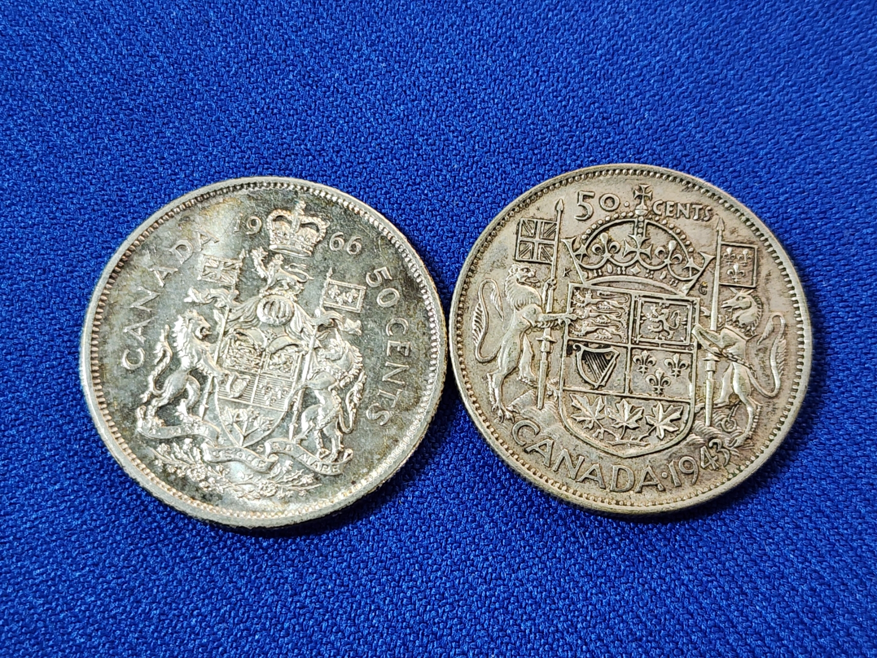 1966 & 1943 Canadian 50 Cent 80% Silver Coins