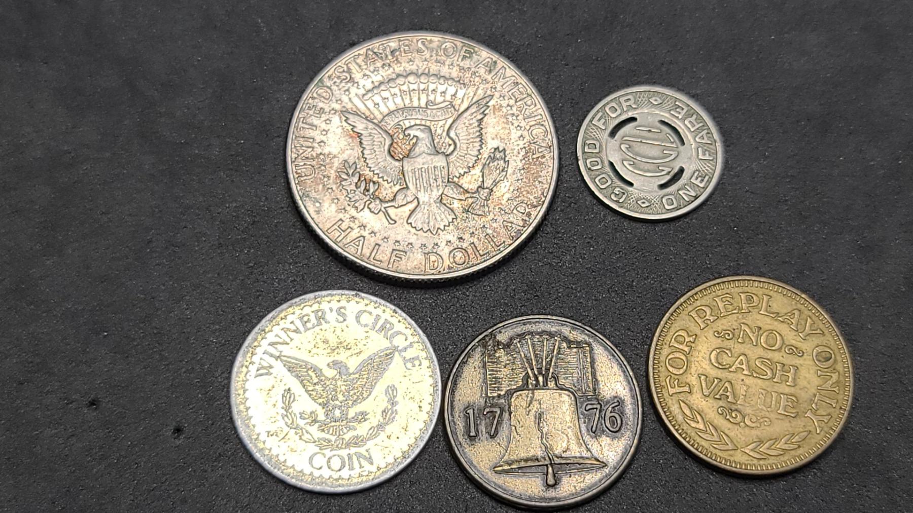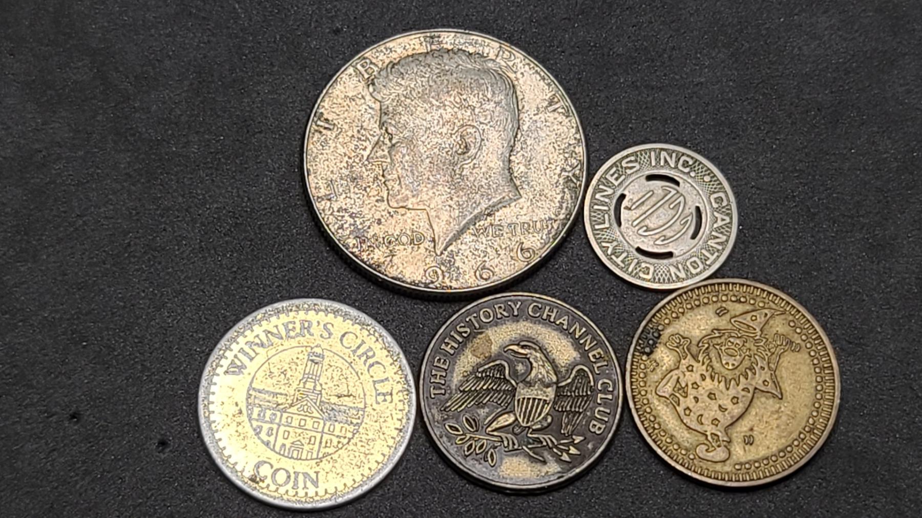 1966 40% Silver Kennedy Half Dollar & Assorted Tokens - Face Value: $0.50