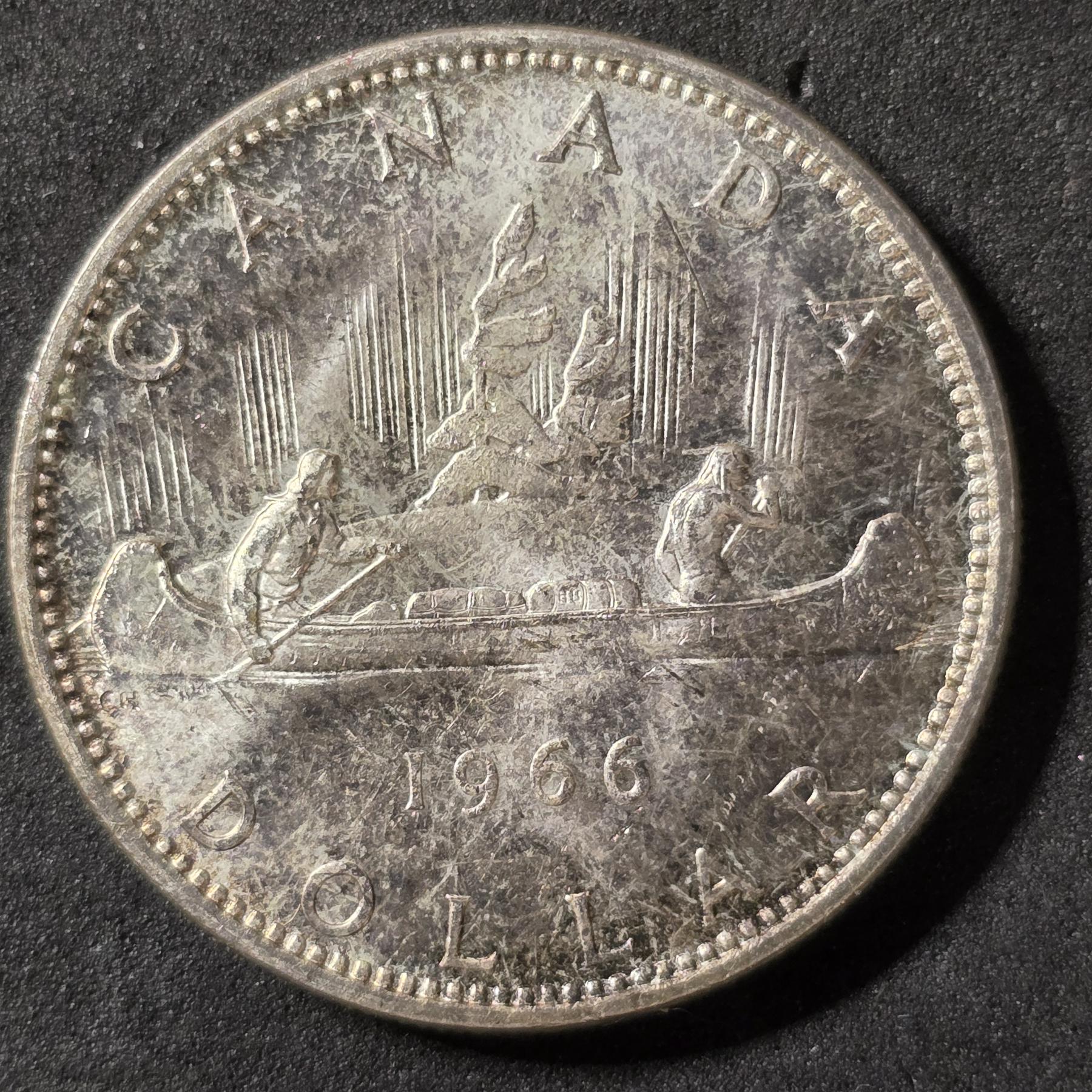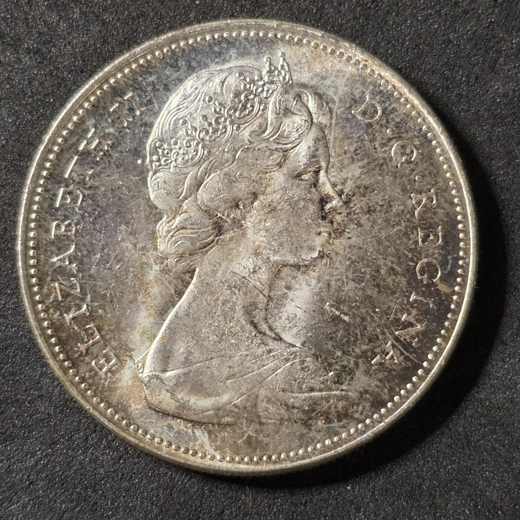 1966 Canada Queen Elizabeth II Voyagers 80% Silver Dollar Coin