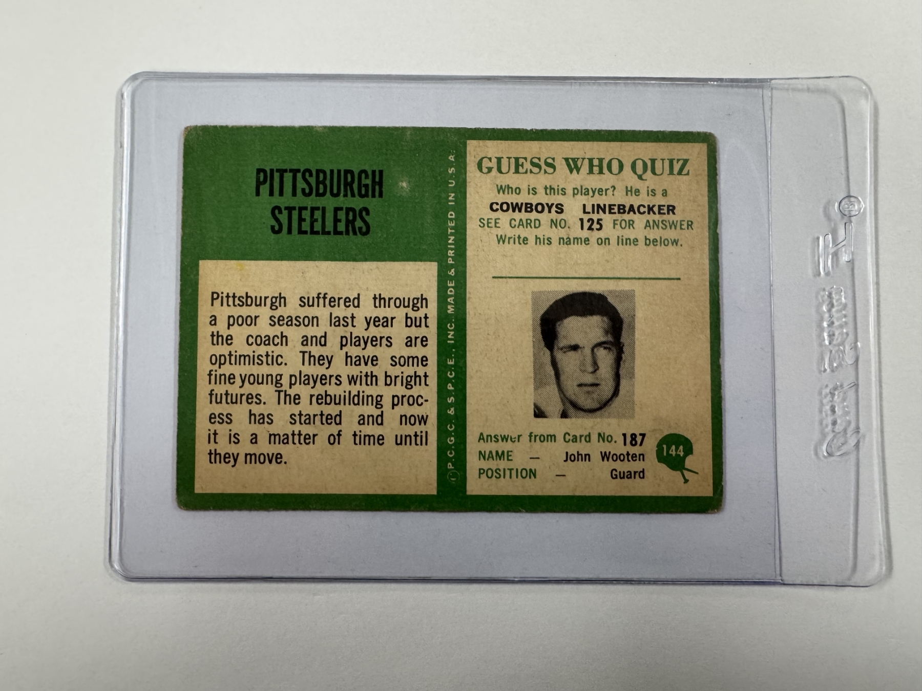 1966 Pittsburgh Steelers Team Football Card - Made By Philadelphia Card Company
