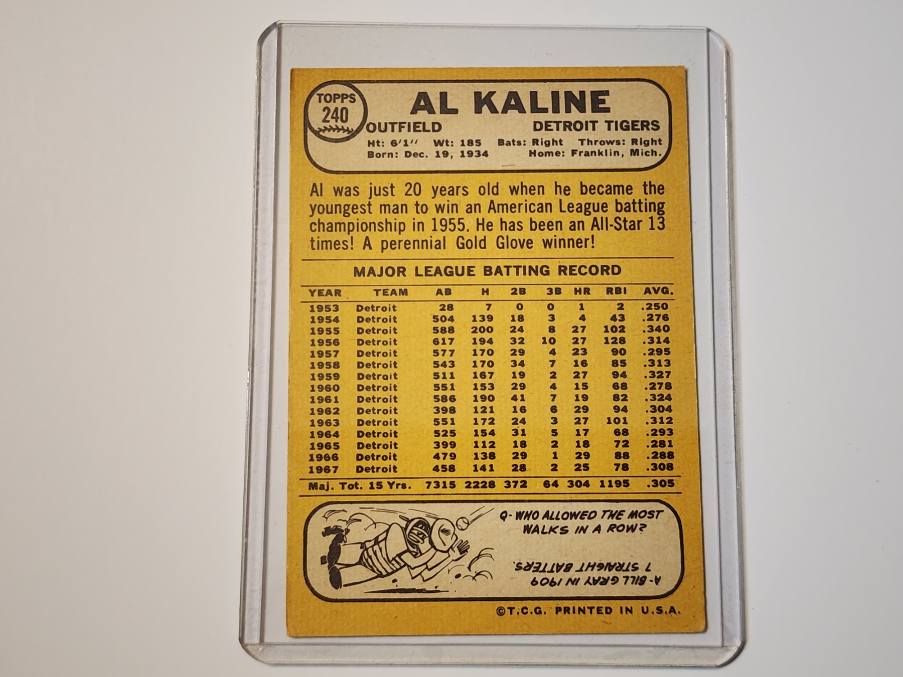 1968 Topps AL KALINE Detroit Tigers #240 - Good Condition in Card Holder!