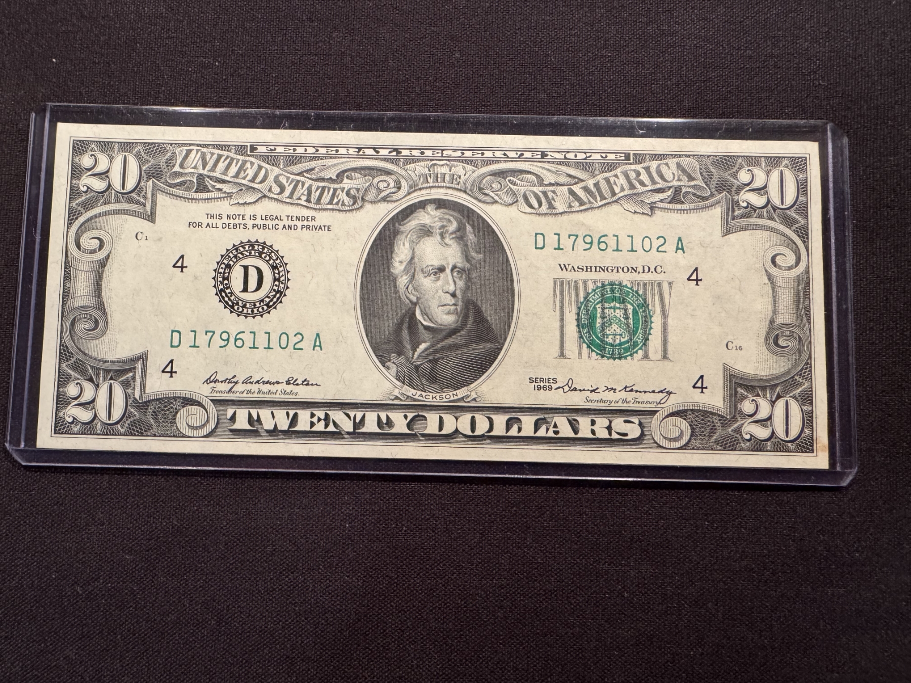 1969 Andrew Jackson United States $20 Bill - Mint Condition In Protective Holder