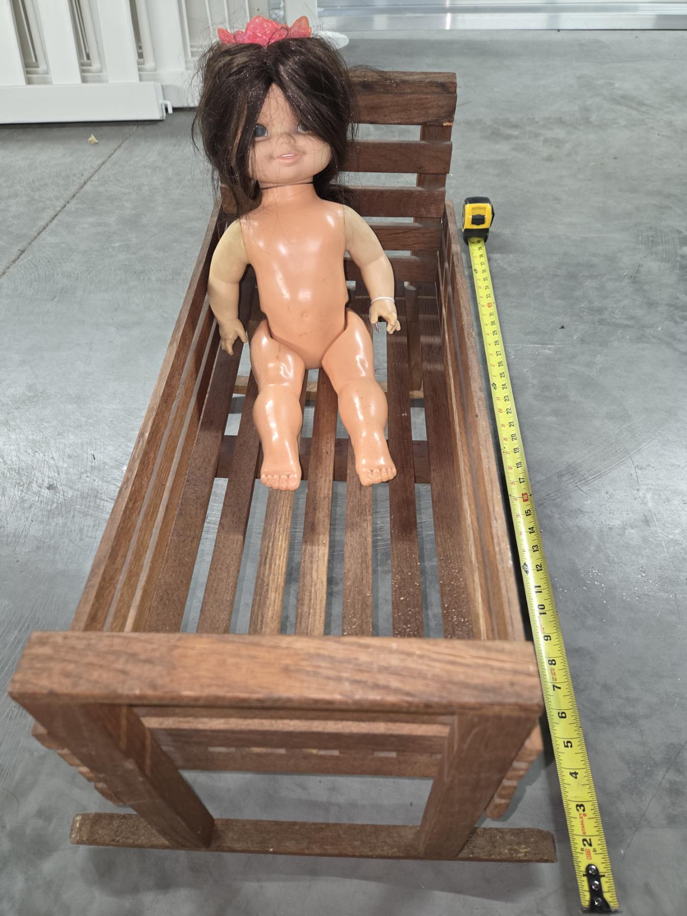 1970's Doll, 2ft Wooden Cradle & Vintage Cabbage Patch Doll