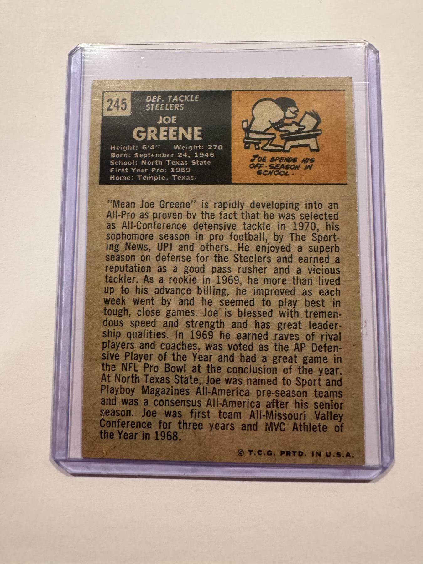 1971 Mean Joe Greene All Star Archives Classic Football Rookie Card In Protective Holder - Mint