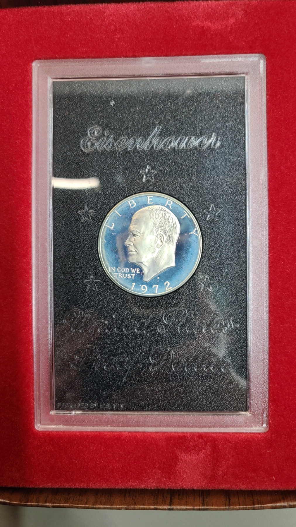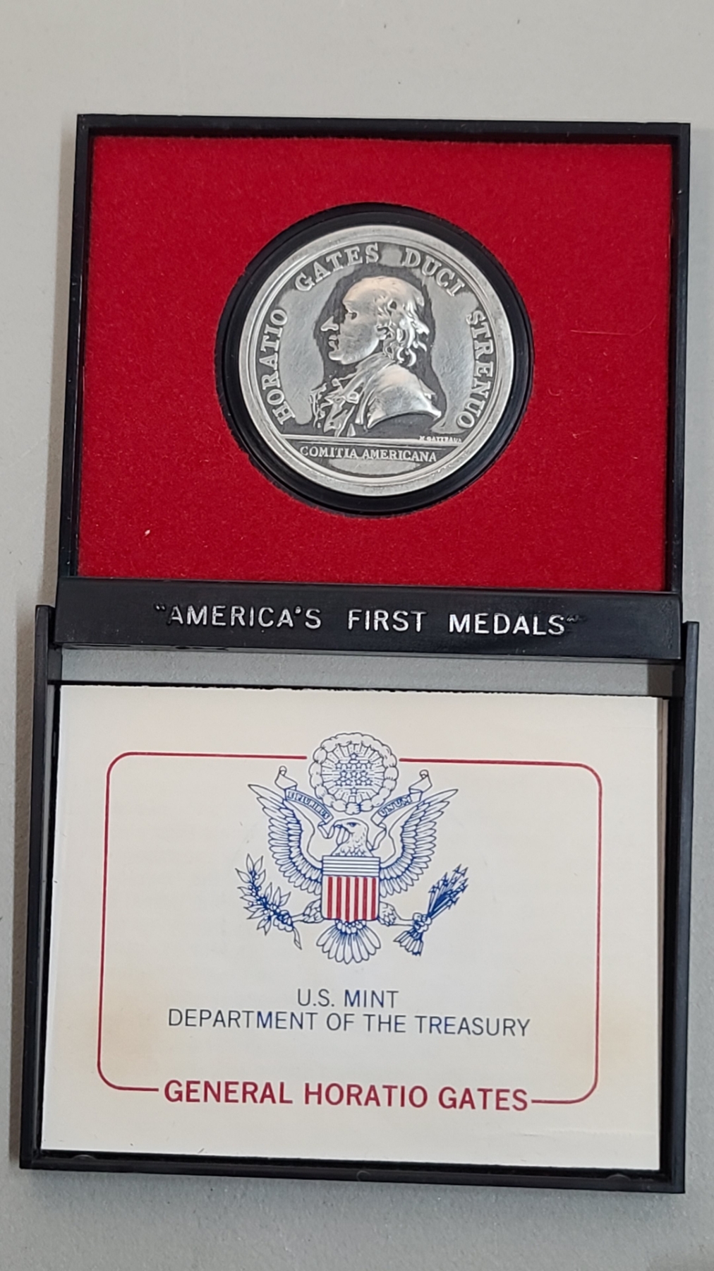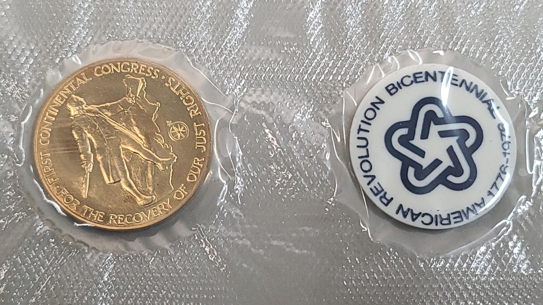 1972-S Eisenhower Uncirculated Silver Dollar Proof Coin, 1974 Bicentennial First Day Cover Medal, American Revolution Bicentennial Commemorative Medal & (4) America's First Medals
