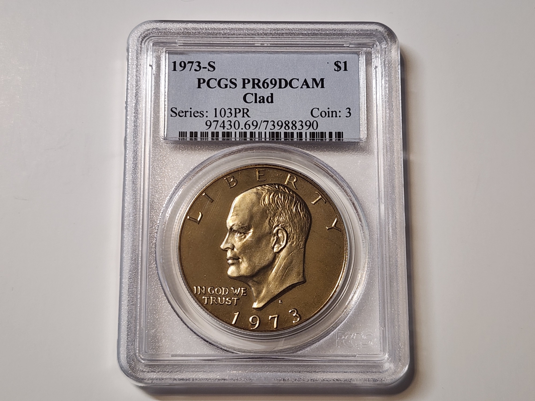 1973-S Eisenhower Clad Dollar Graded PR 69 DCAM by PCGS