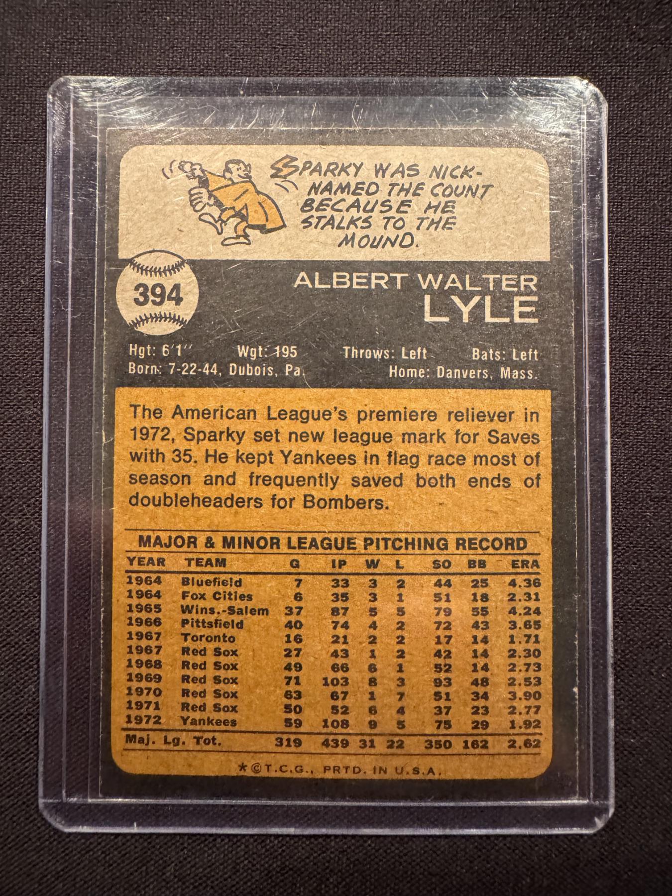 1973 Sparky Lyle New York Yankees Baseball Card - Mint Condition