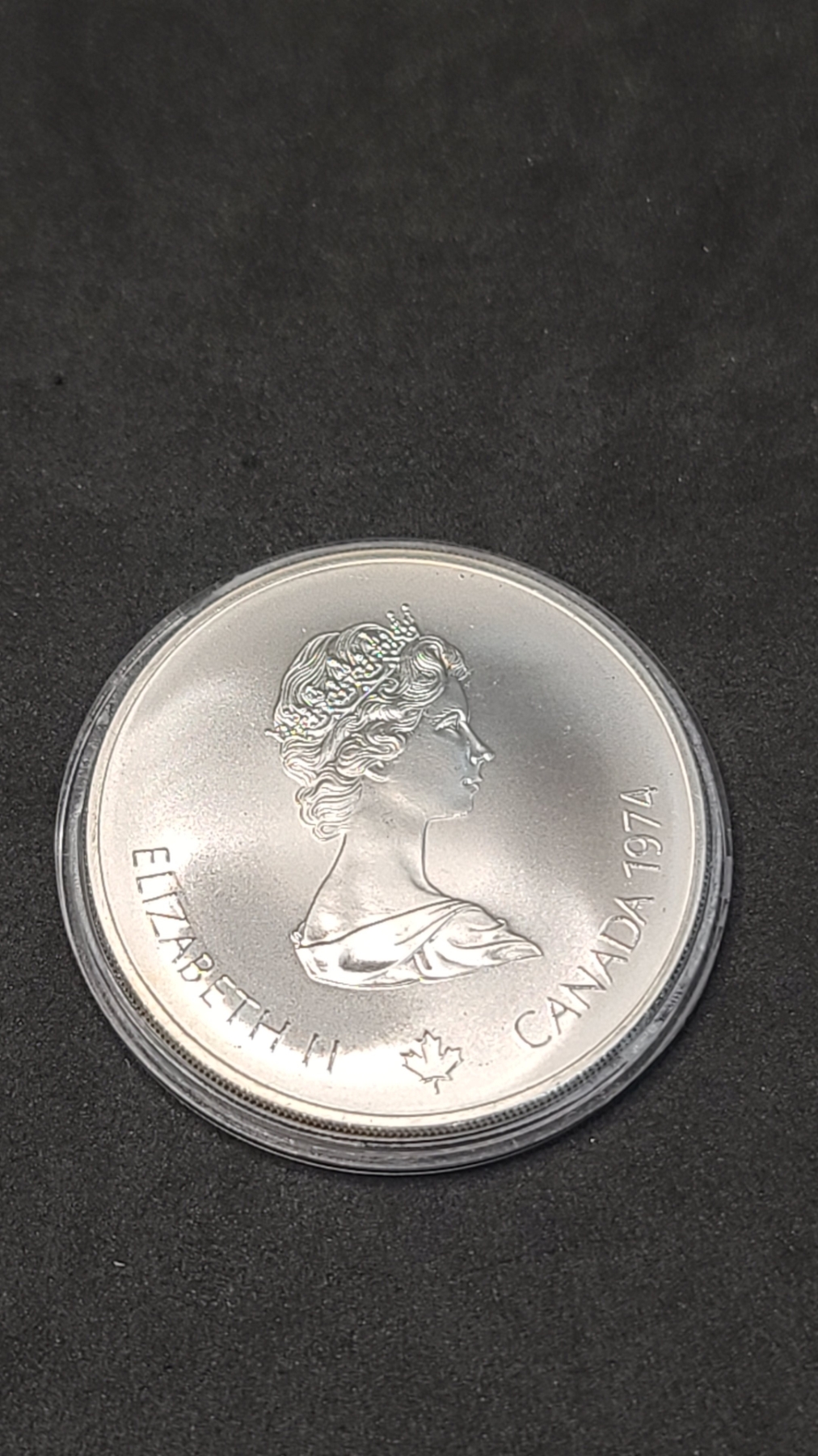 1974 Canadian Queen Elizabeth/ Montreal Olympics Rowing 0.925 Silver $5 Coin