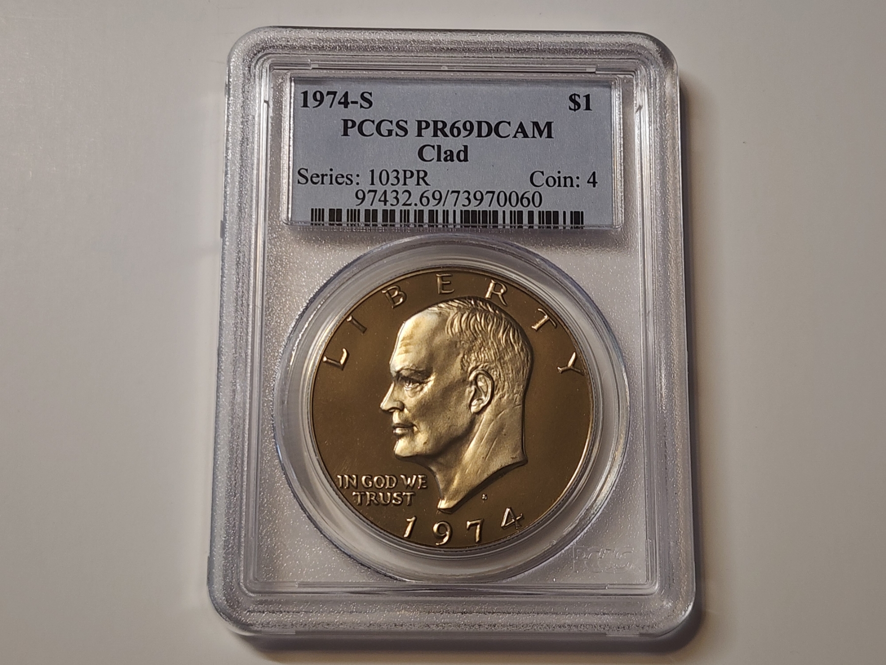 1974-S Eisenhower Clad Dollar Graded PR 69 DCAM by PCGS