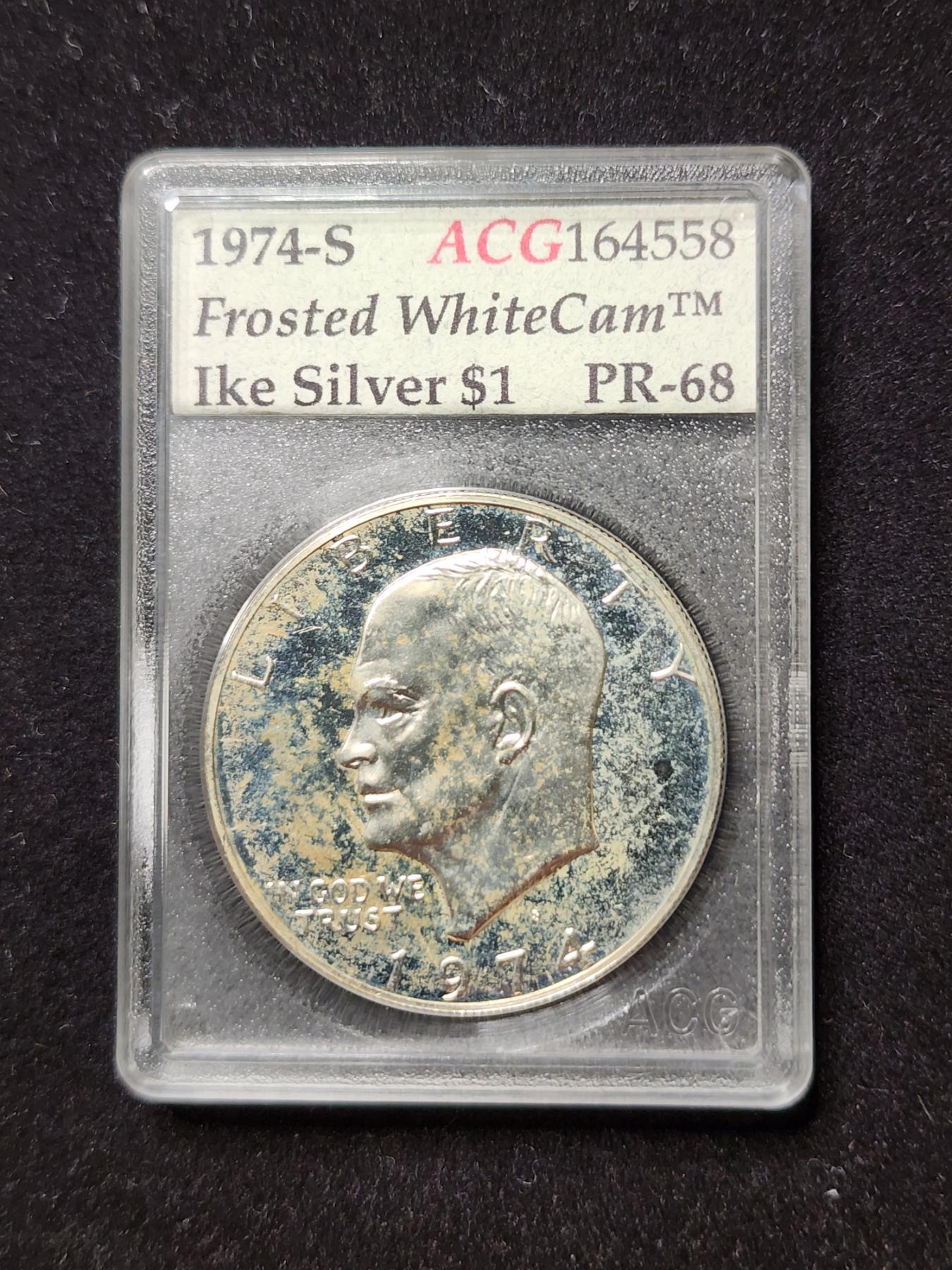 1974-S Silver Eisenhower Proof Dollar - ACG Graded PR-68