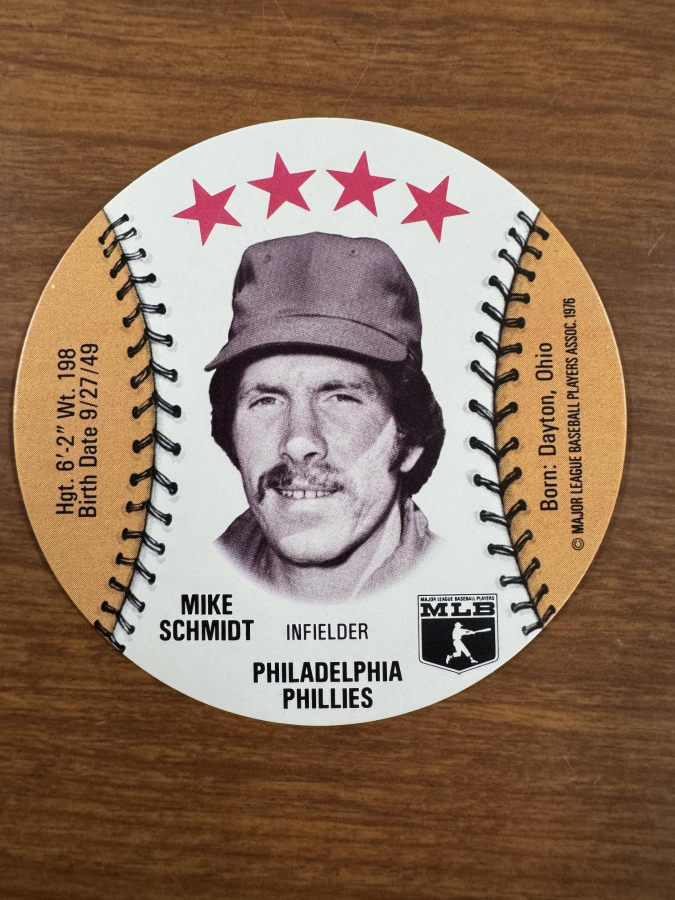 1976 Mike Schmidt Phillies Isaly's Round Baseball Card - Mint Condition