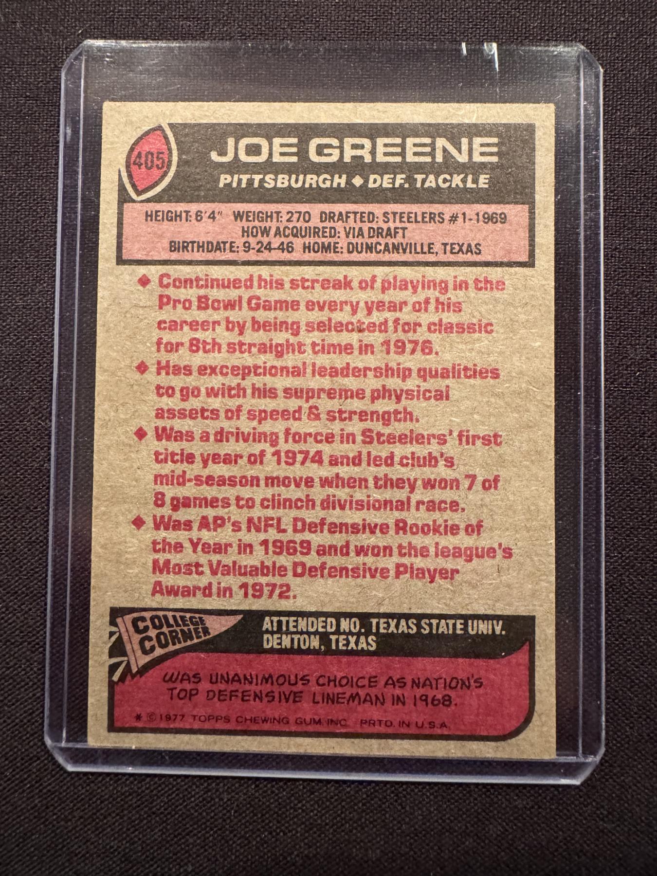 1977 Topps Mean Joe Greene Pittsburgh Steelers Football Card - Mint Condition