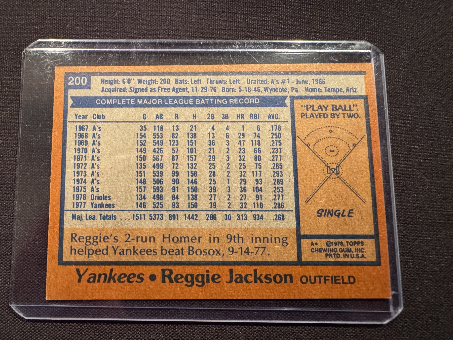 1978 Topps Reggie Jackson New York Yankees Baseball Card - Mint Condition