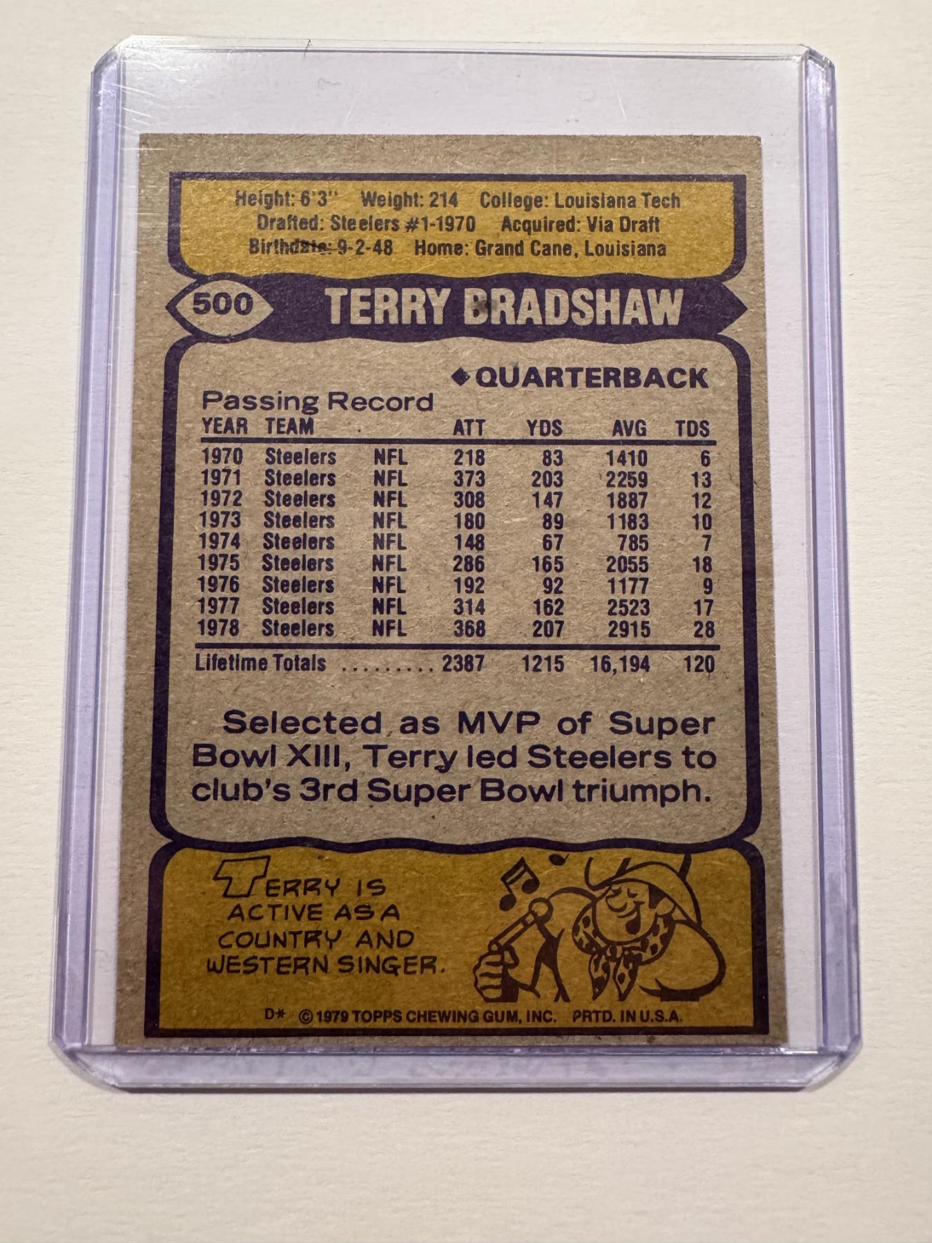 1979 Topps Terry Bradshaw Pittsburgh Steelers Football Card - Mint Condition