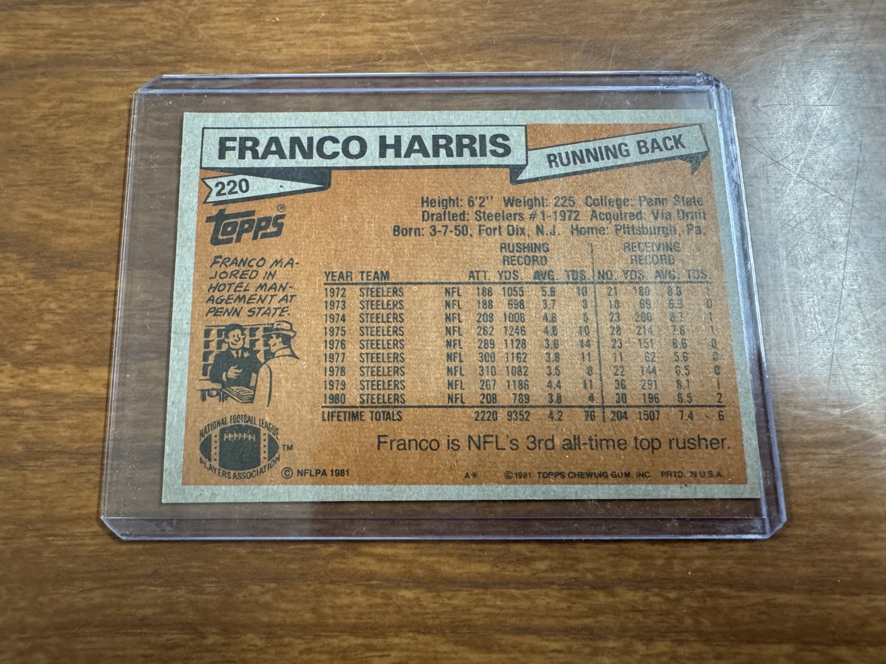 1981 Topps Franco Harris #220 Football Card - Mint Condition