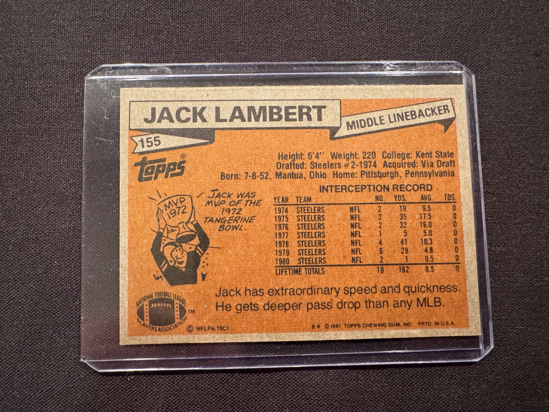 1981 Topps Jack Lambert Pittsburgh Steelers Football Card In Protective Holder - Mint Condition
