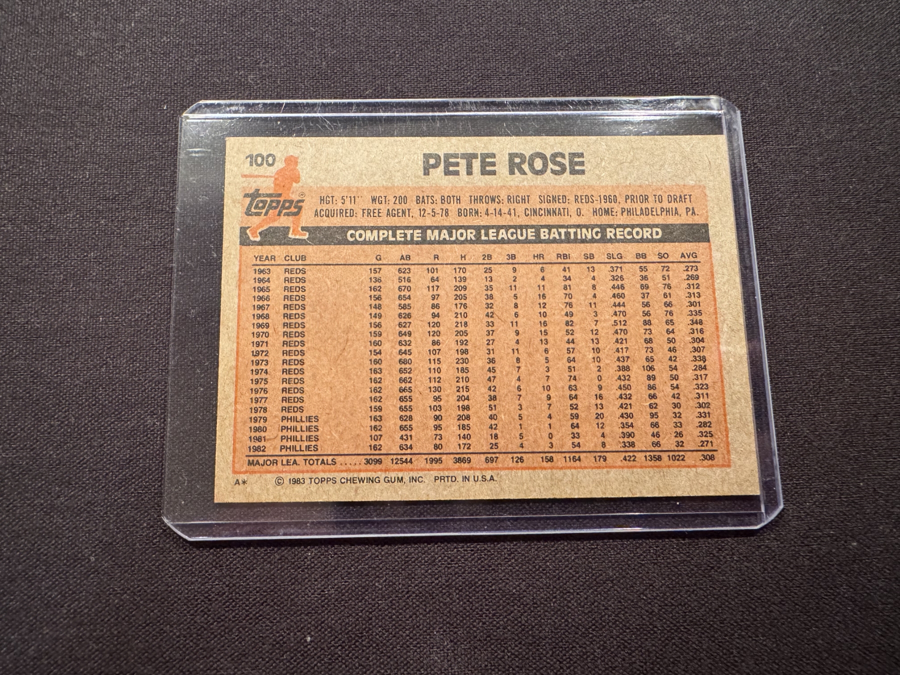 1983 Topps Pete Rose Baseball Card - Mint Condition In Protective Holder