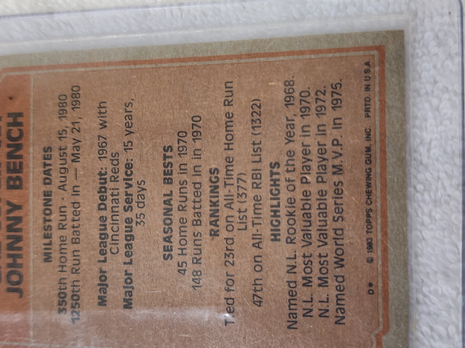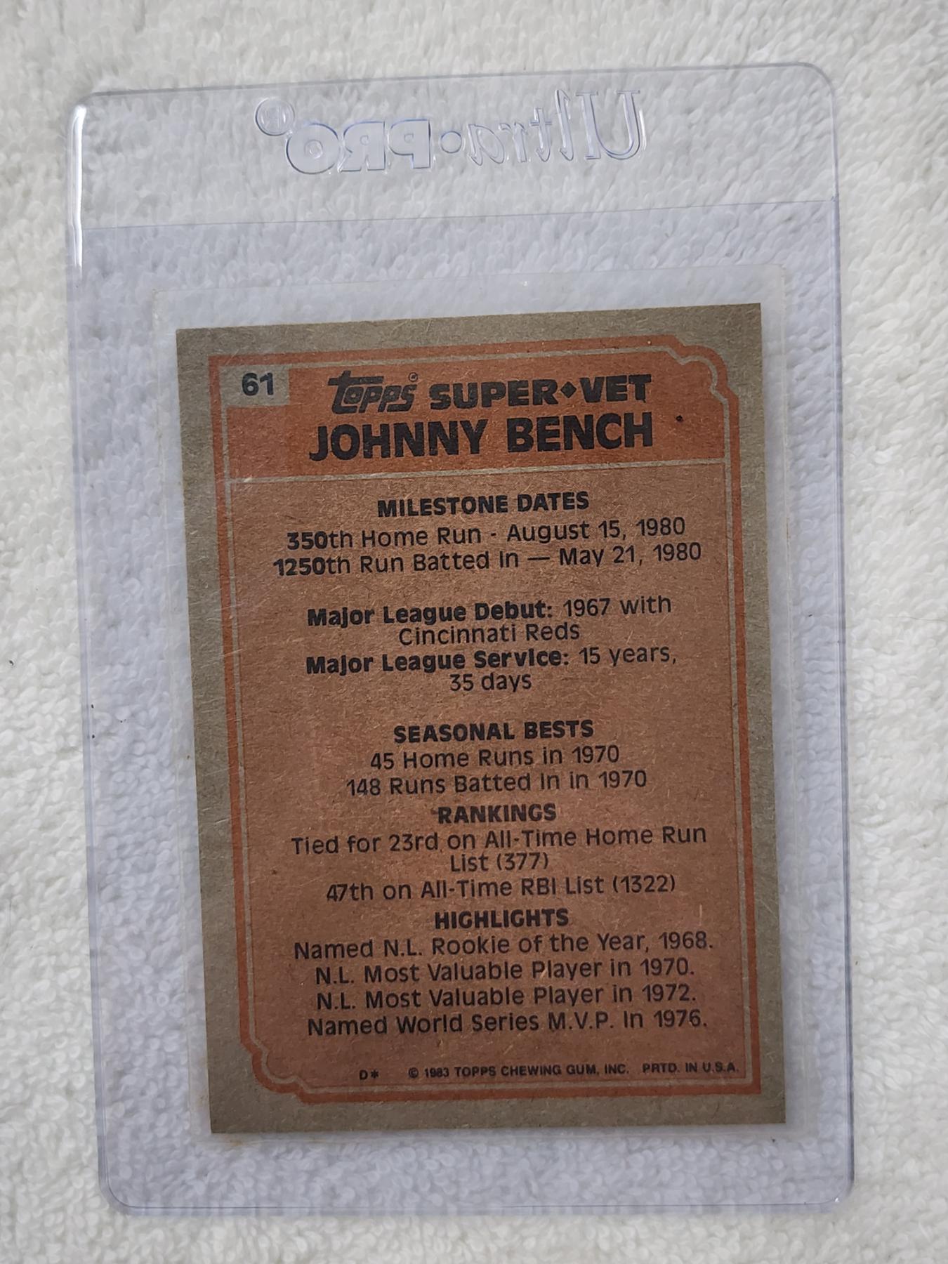 1983 Topps Super Vet Johnny Bench Baseball Trading Card