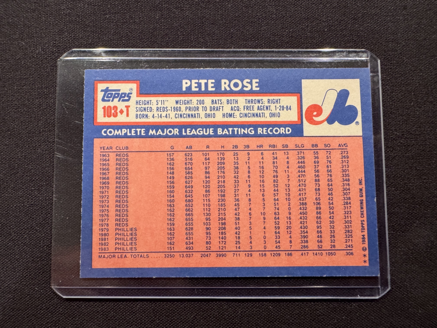 1984 Topps Traded Pete Rose Baseball Card - Mint Condition In Protective Holder