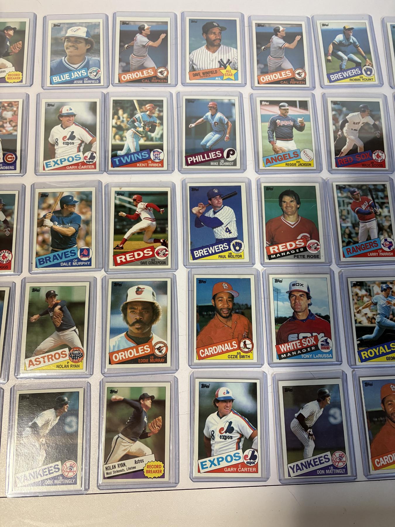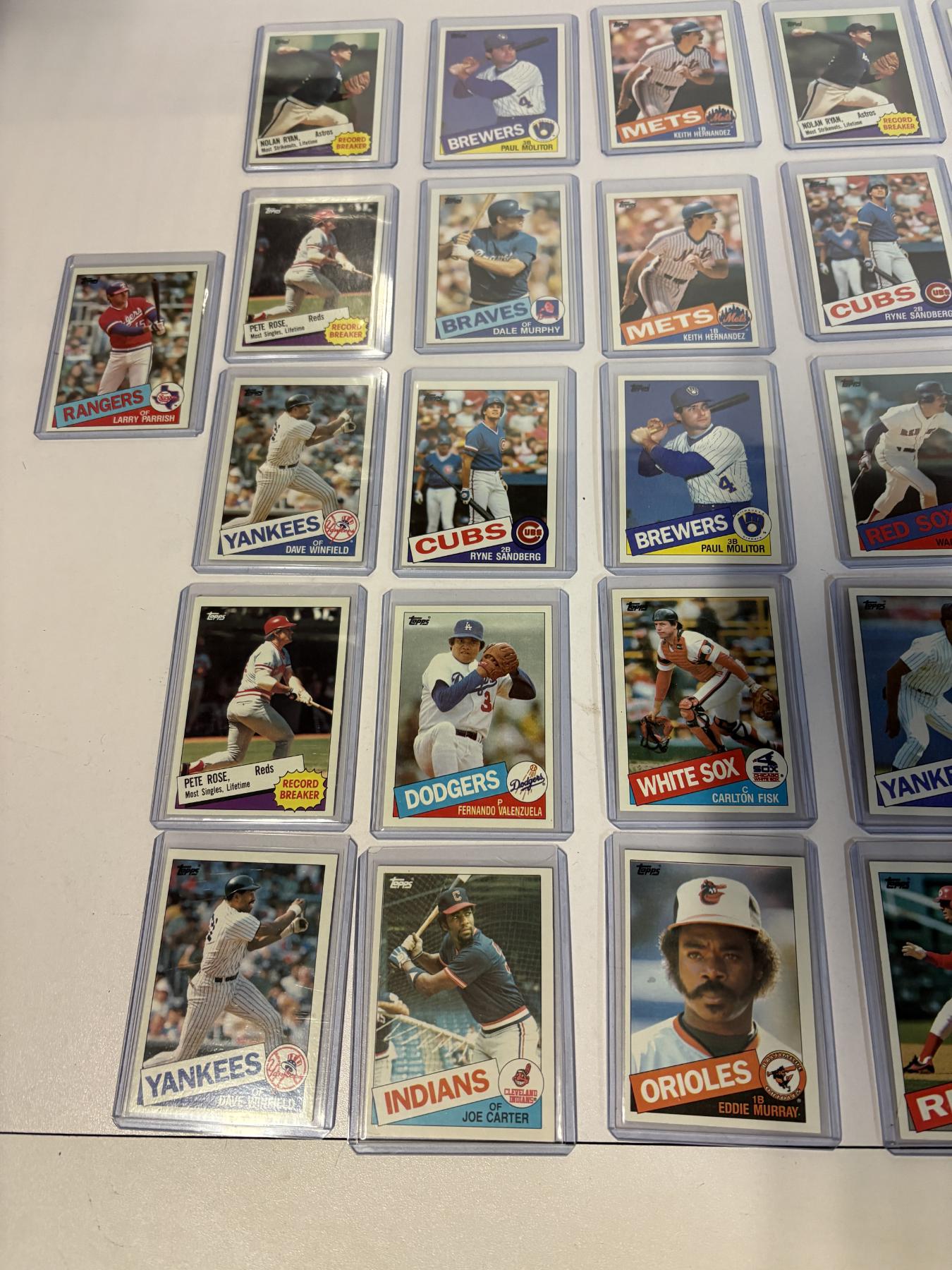 1985 Topps Baseball Cards in clear sleeves - 51 Cards total- Great Condition - Red Sox - Cubs - Brewers - Indians