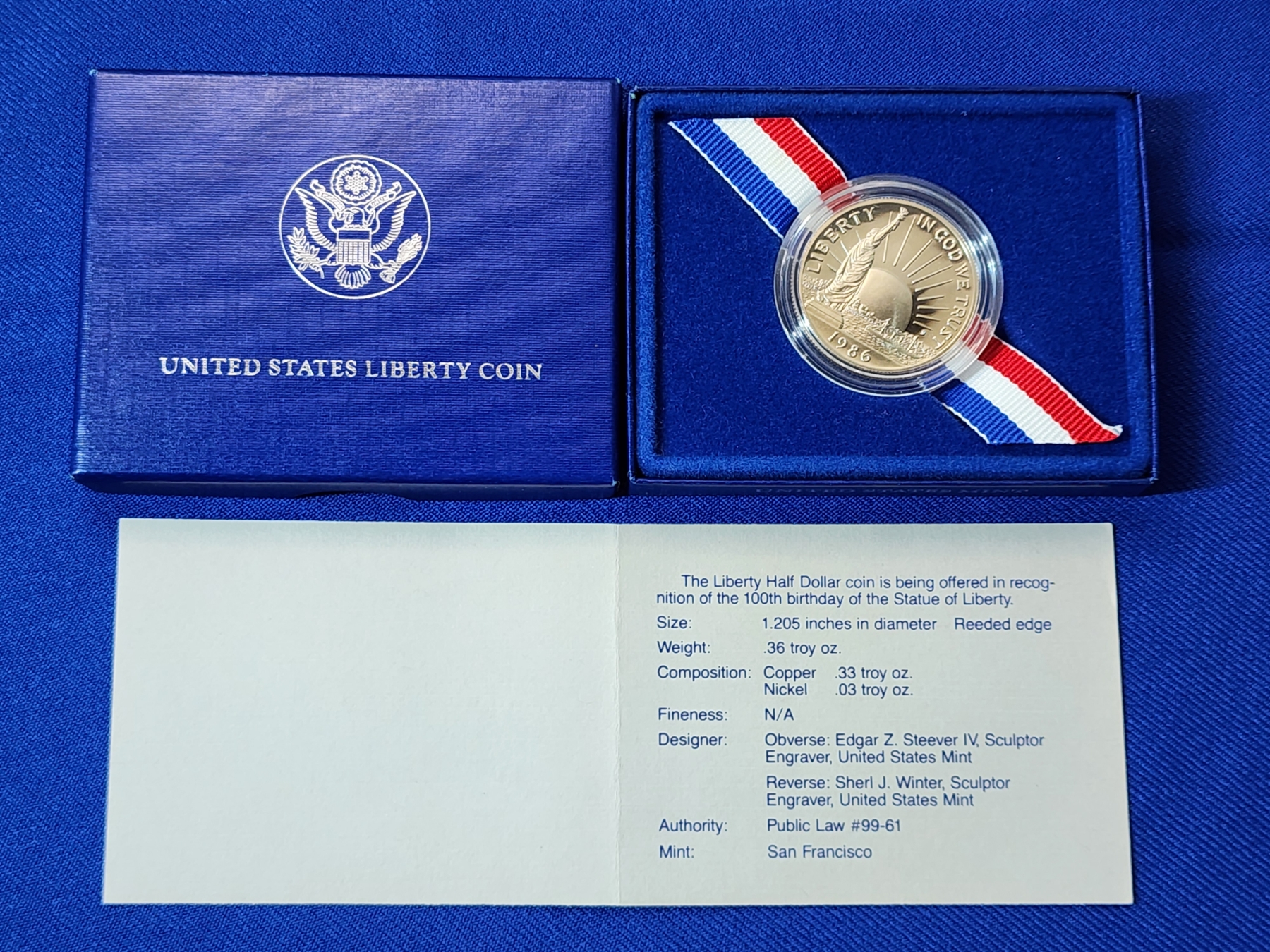1986 Liberty Half Dollar with Original Box and Certificate of Authenticity