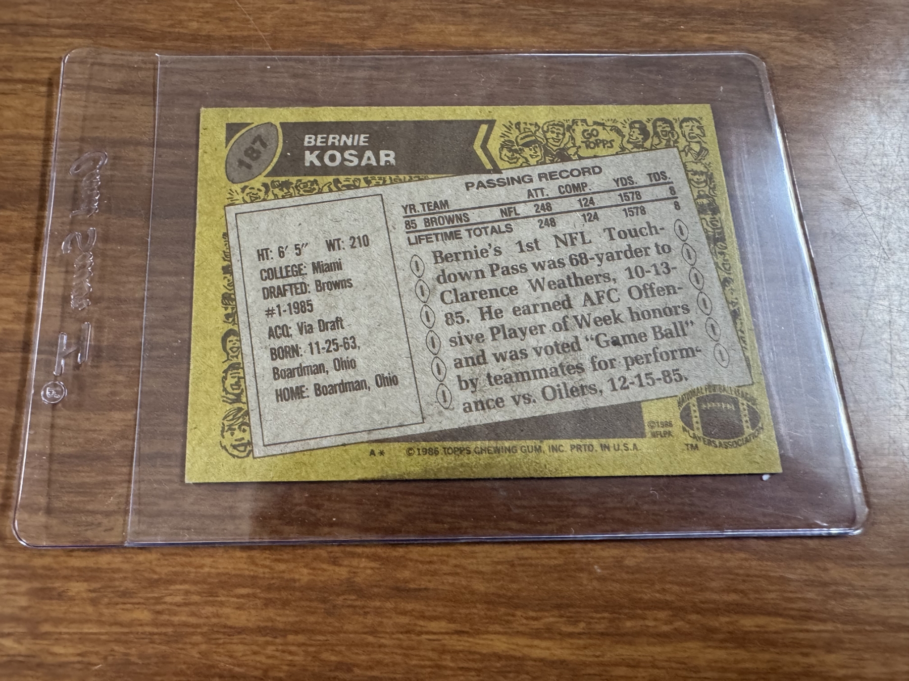 1986 Topps Bernie Kosar Rookie Football Card In Protective Holder - Mint Condition