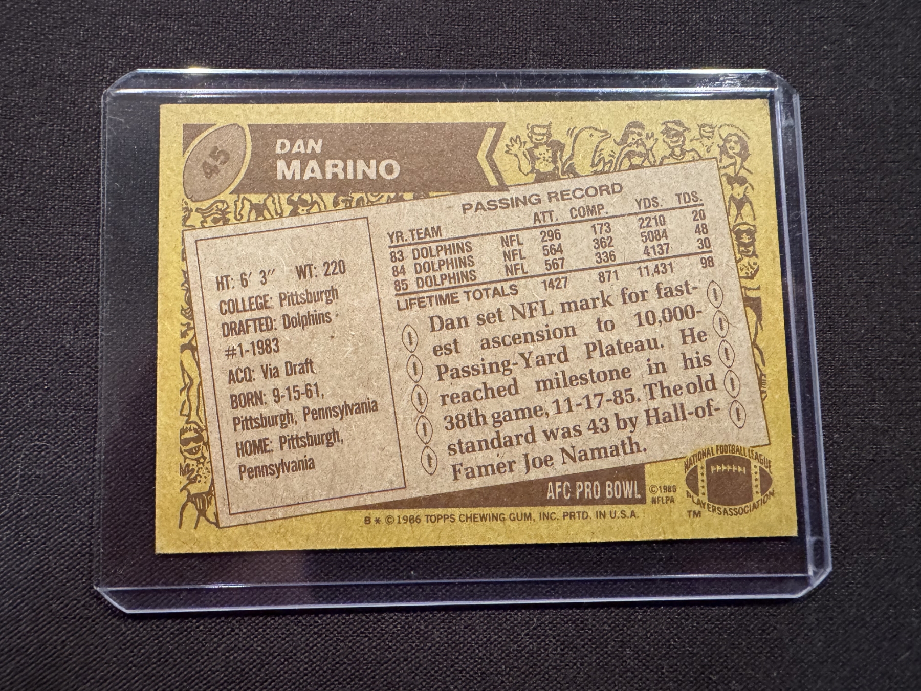 1986 Topps Dan Marino Miami Dolphins Football Card - Card #45 - Excellent Condition