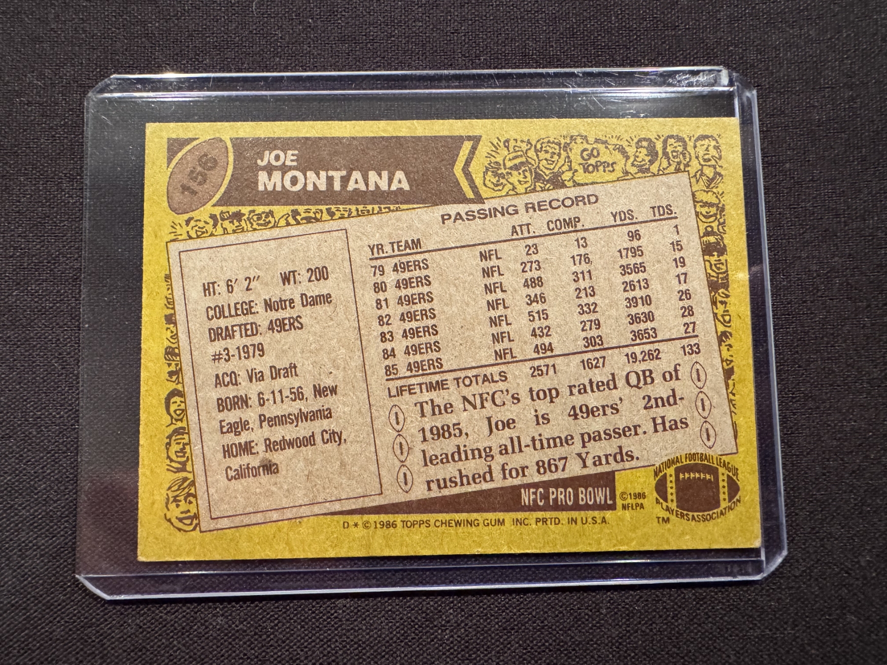 1986 Topps Joe Montana San Francisco 49ERS Football Card - Mint Condition