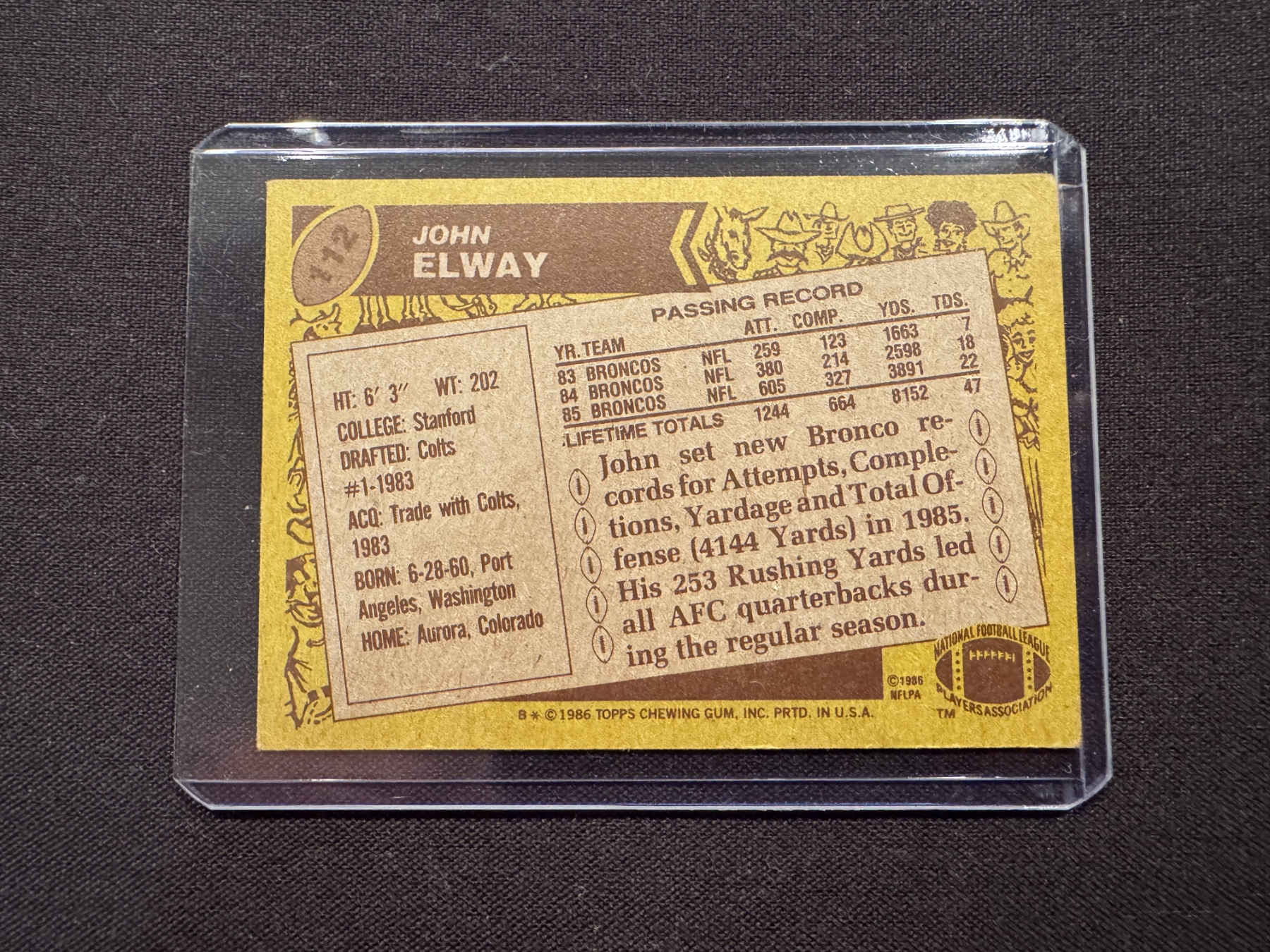 1986 Topps John Elway Rookie Football Card - Mint Condition