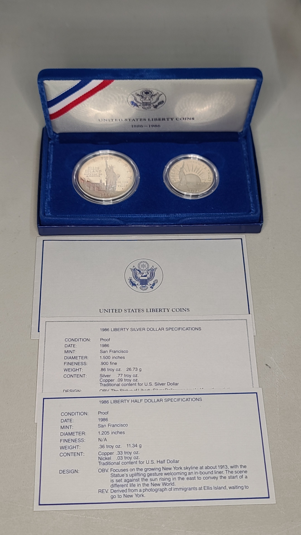 1986 United States Liberty Commemorative Proof Coin Set Including 90% Silver Liberty Proof Dollar With COA