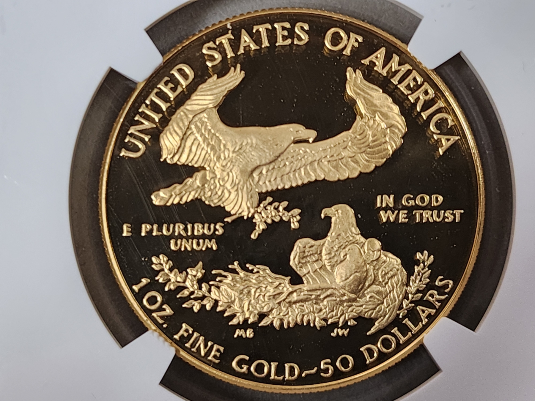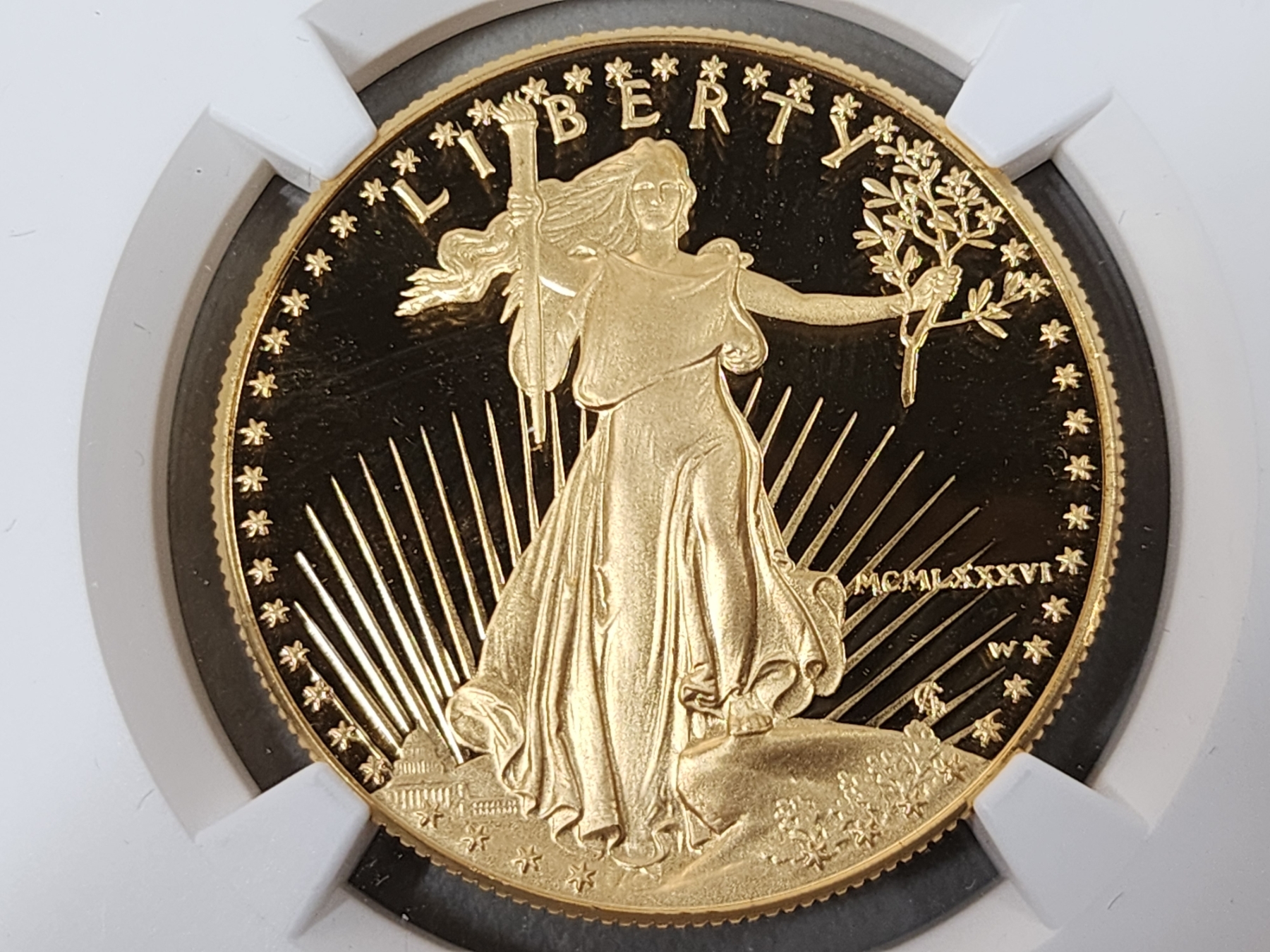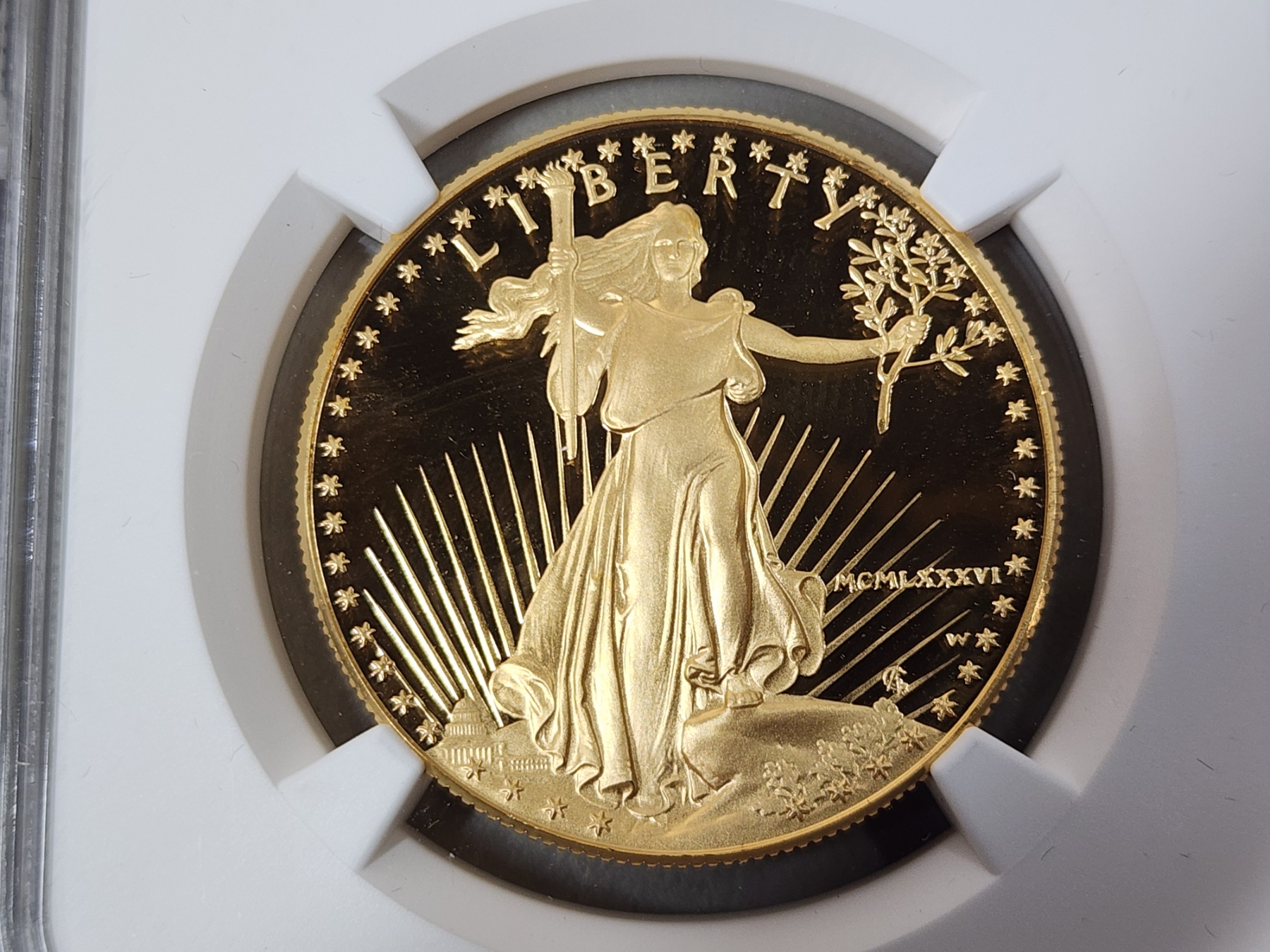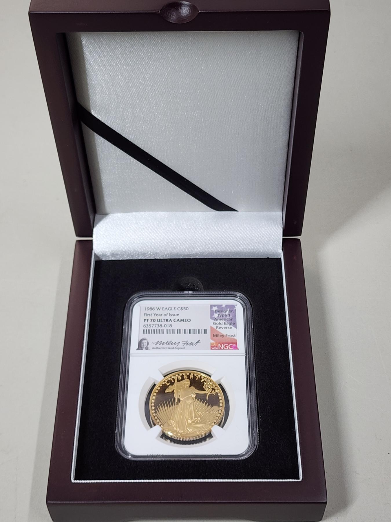 1986-W NGC PF 70 ULTRA CAMEO $50 Gold Eagle 1oz Fine Gold - First Year of Issue, Signed