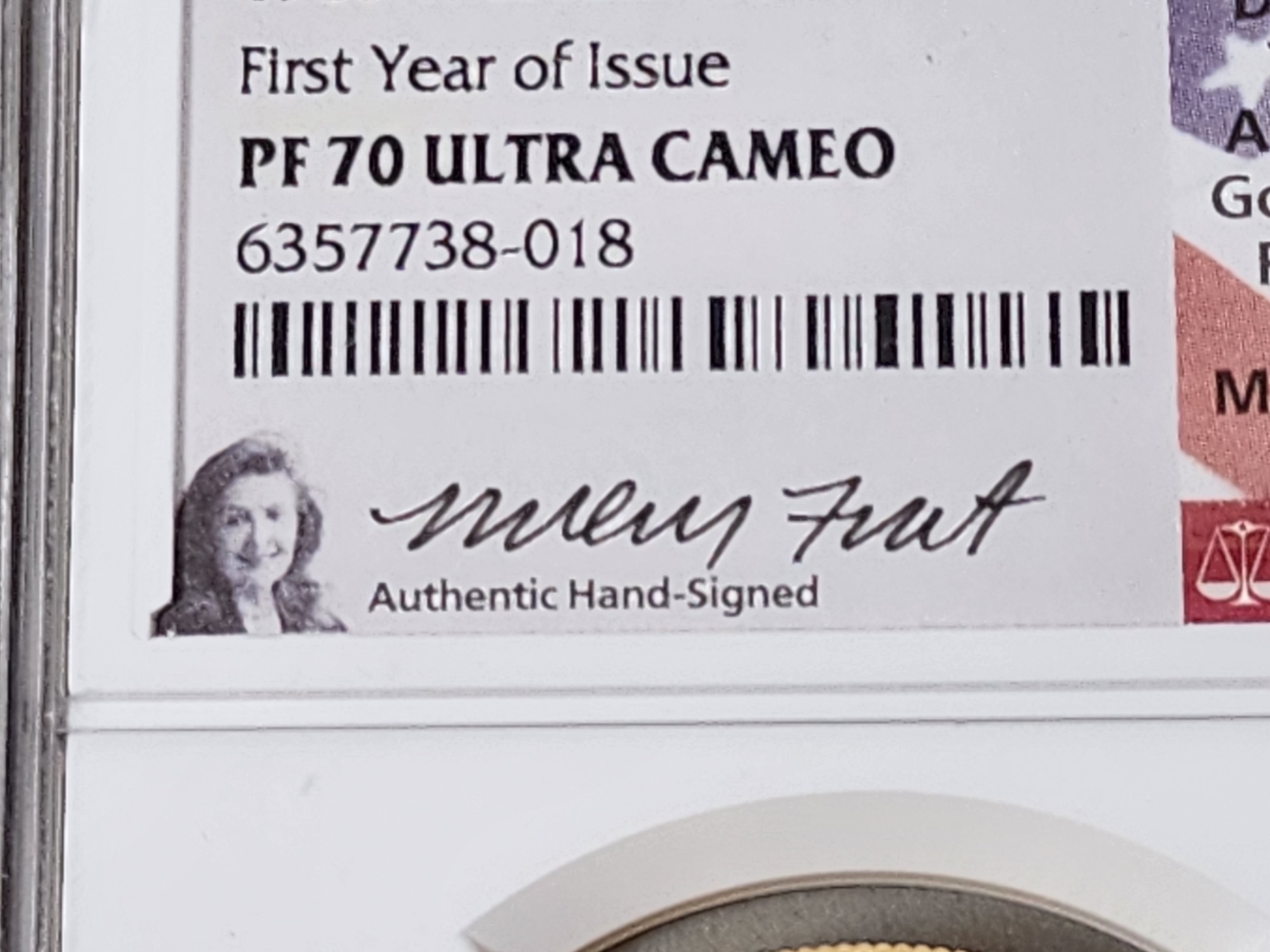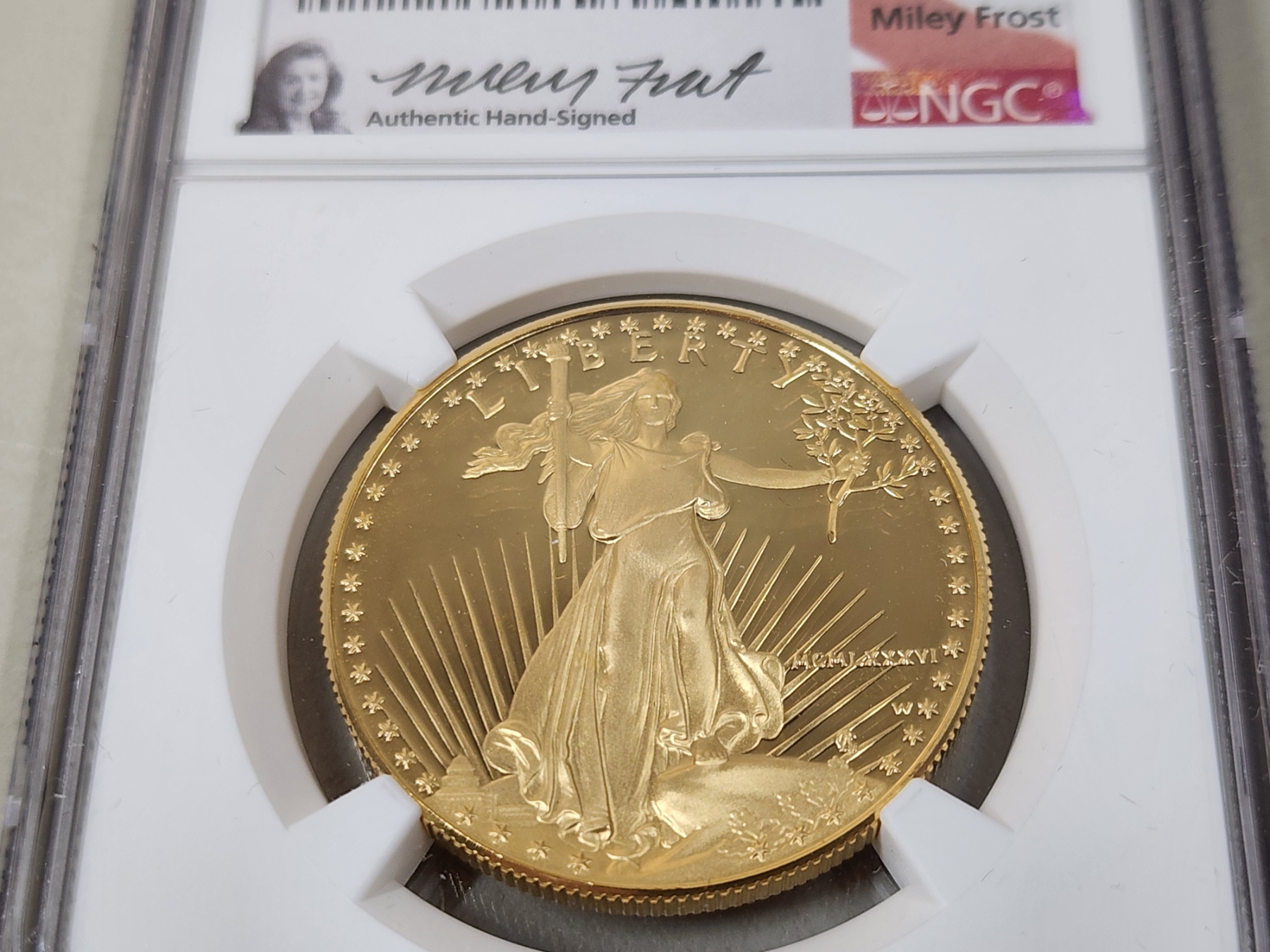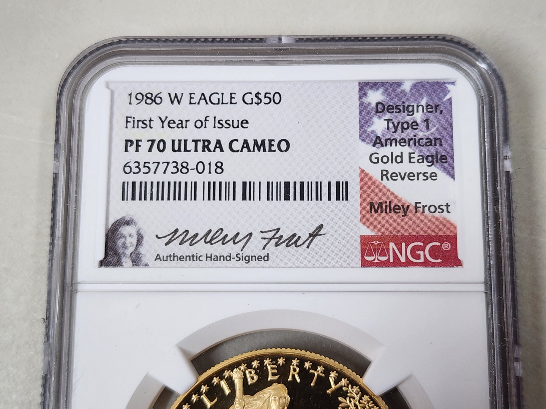 Authentic Hand Signed by Designer, Type 1 American Gold Eagle Reverse Miley Frost