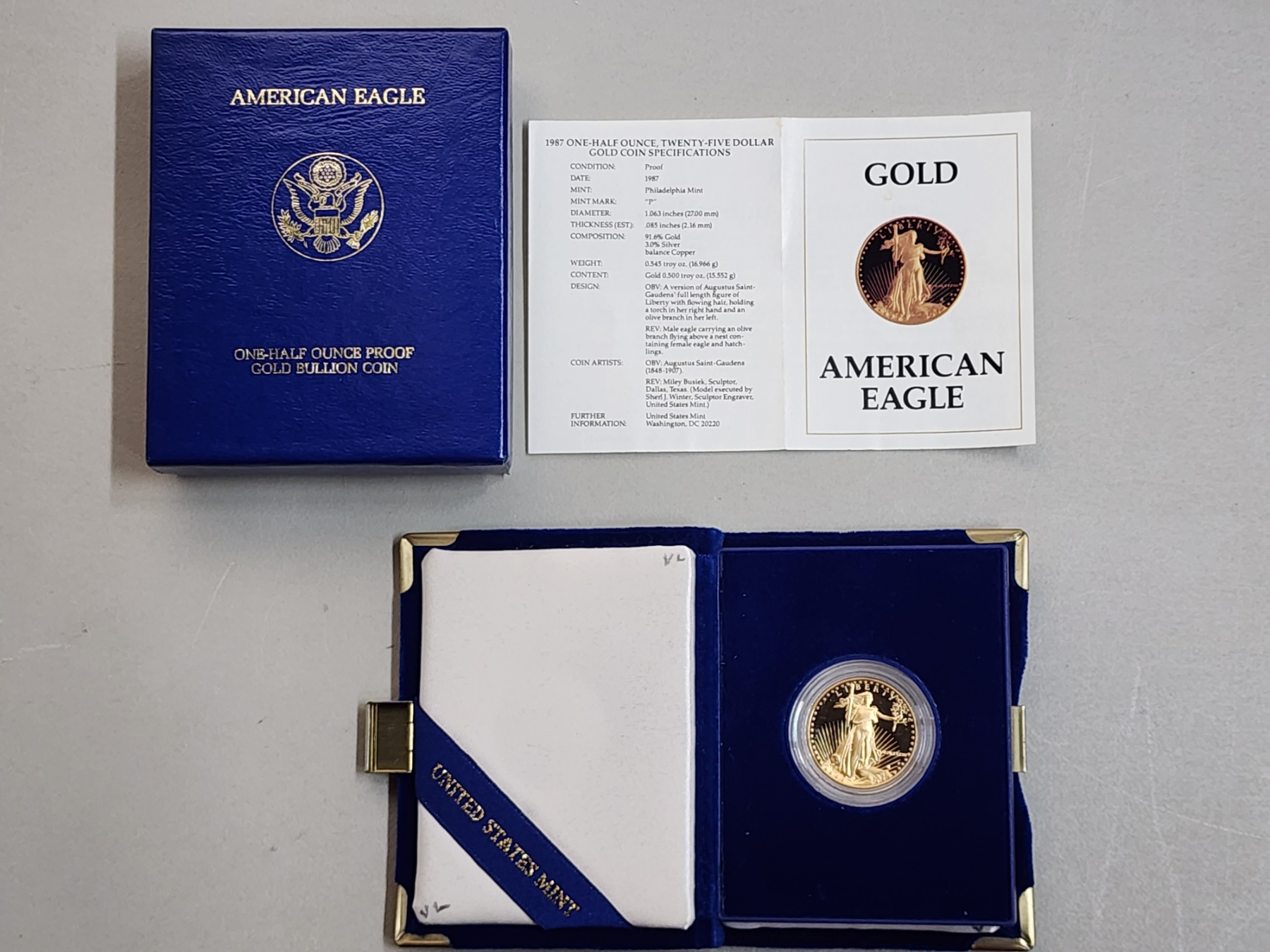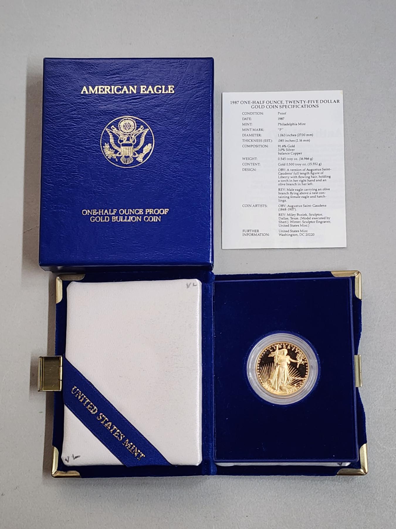 1987 One-Half Ounce $25 Gold American Eagle Proof Coin w/ Box and Certificate of Authenticity