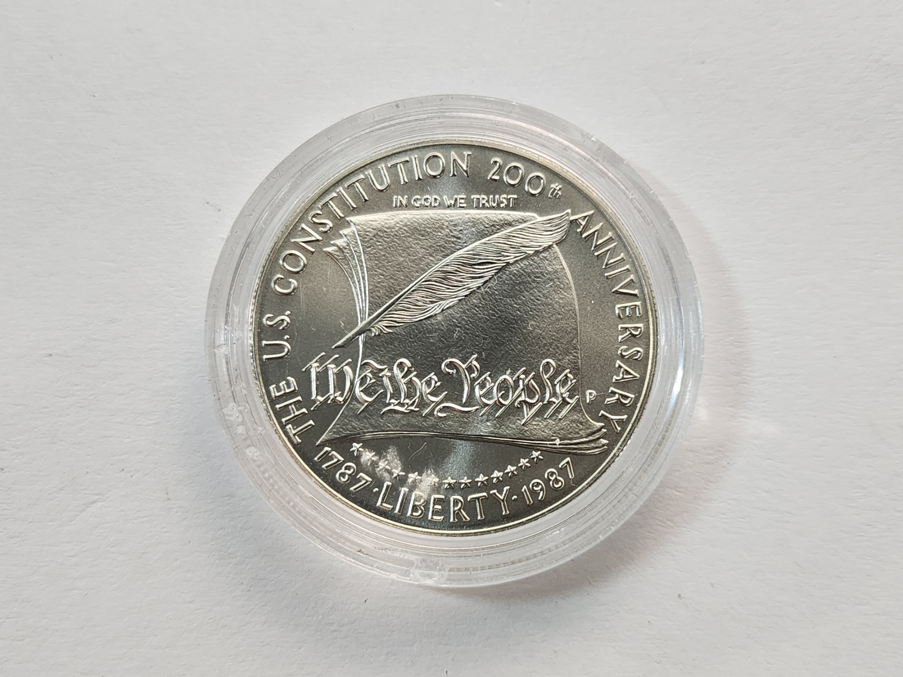 1987 United States Constitution 200th Anniversary 90% Silver Dollar Coin In Capsule