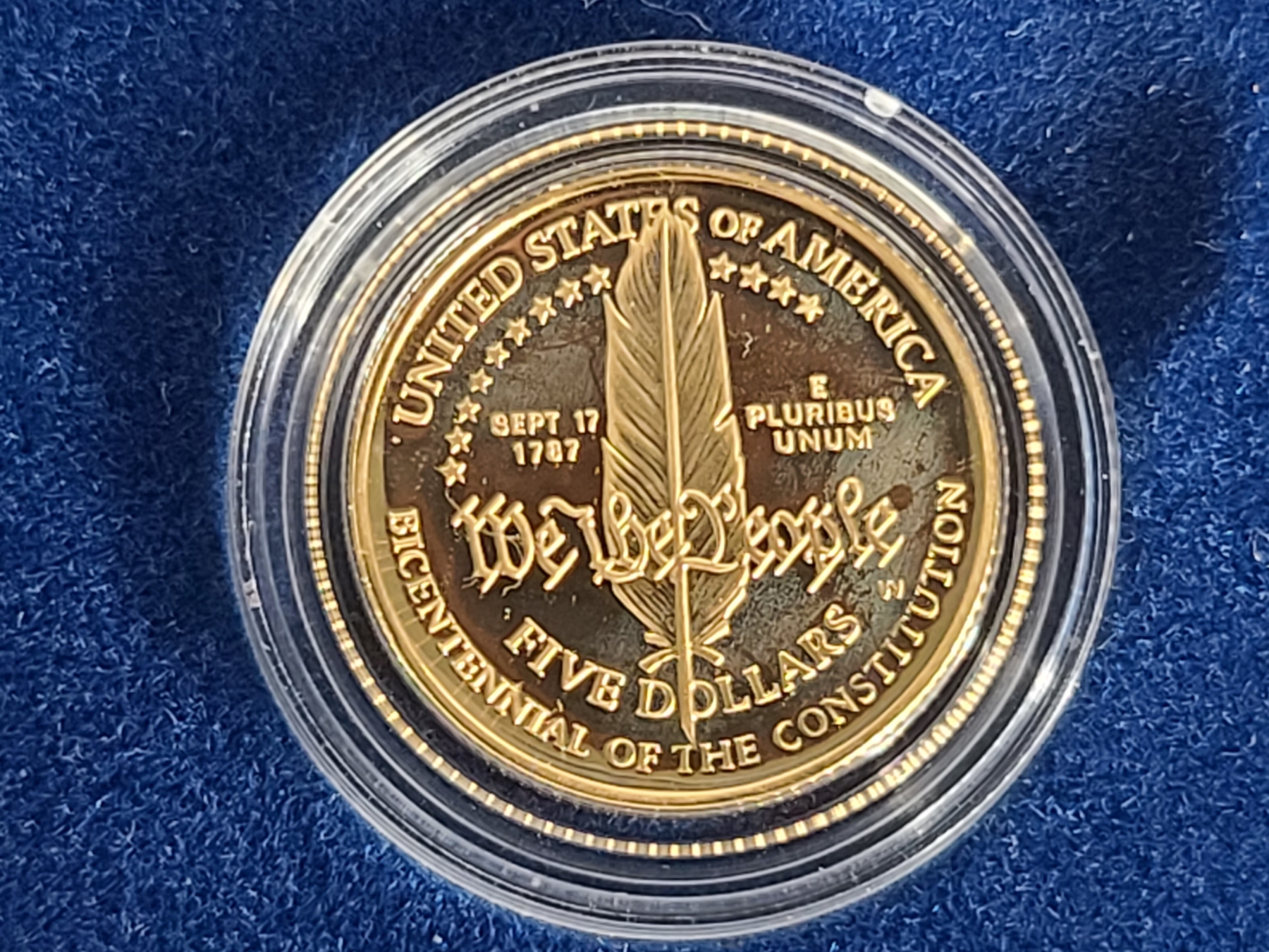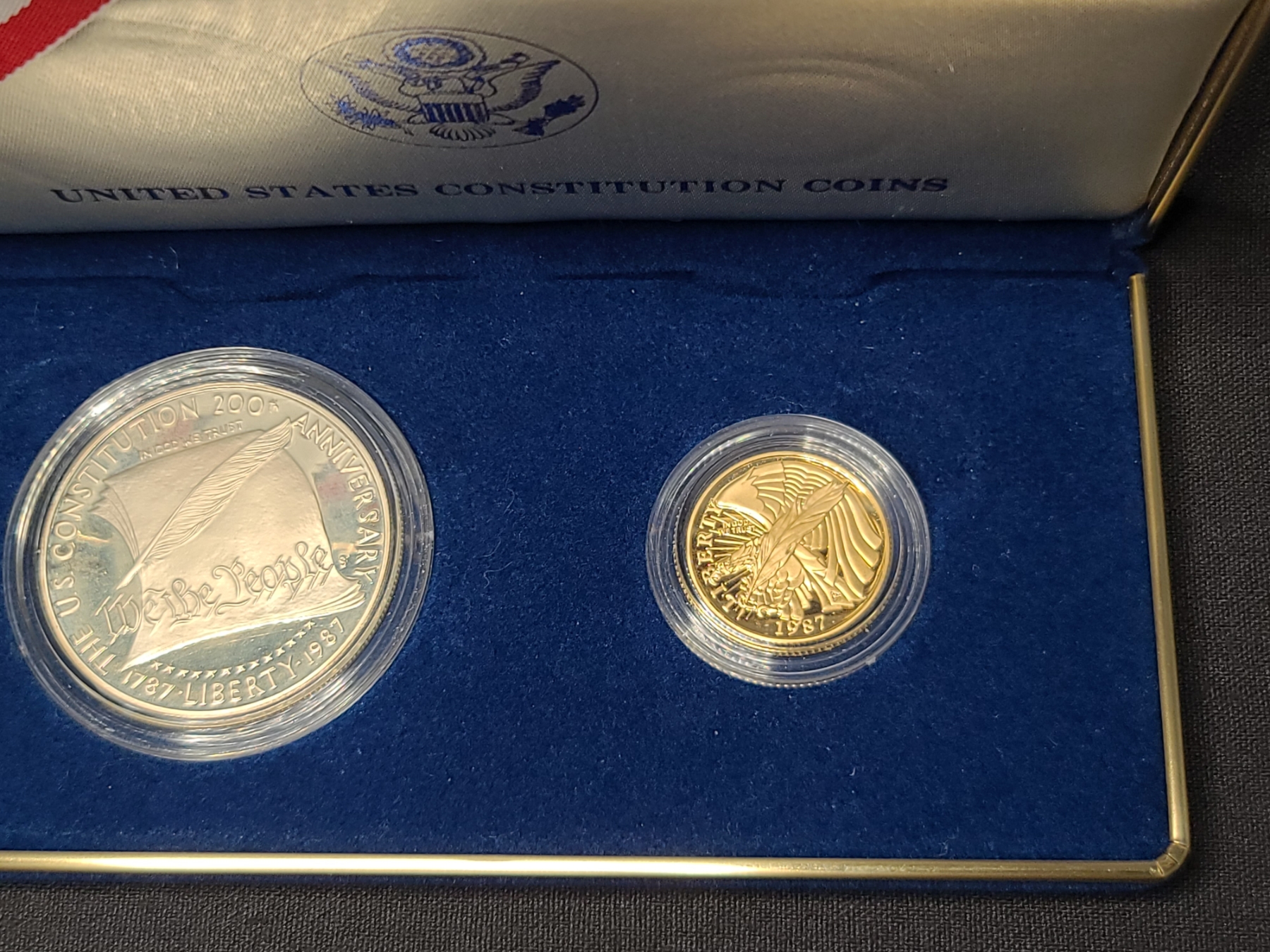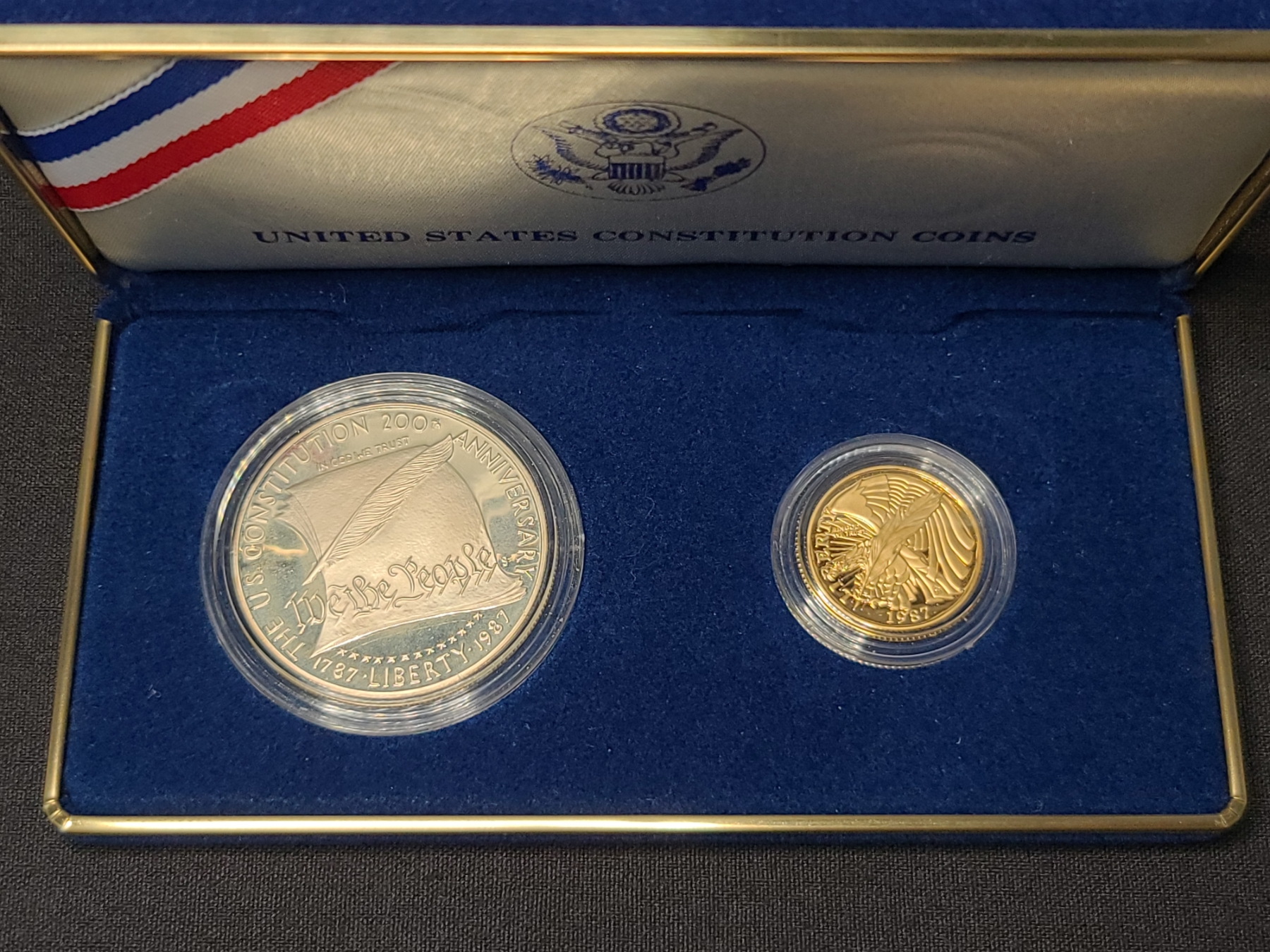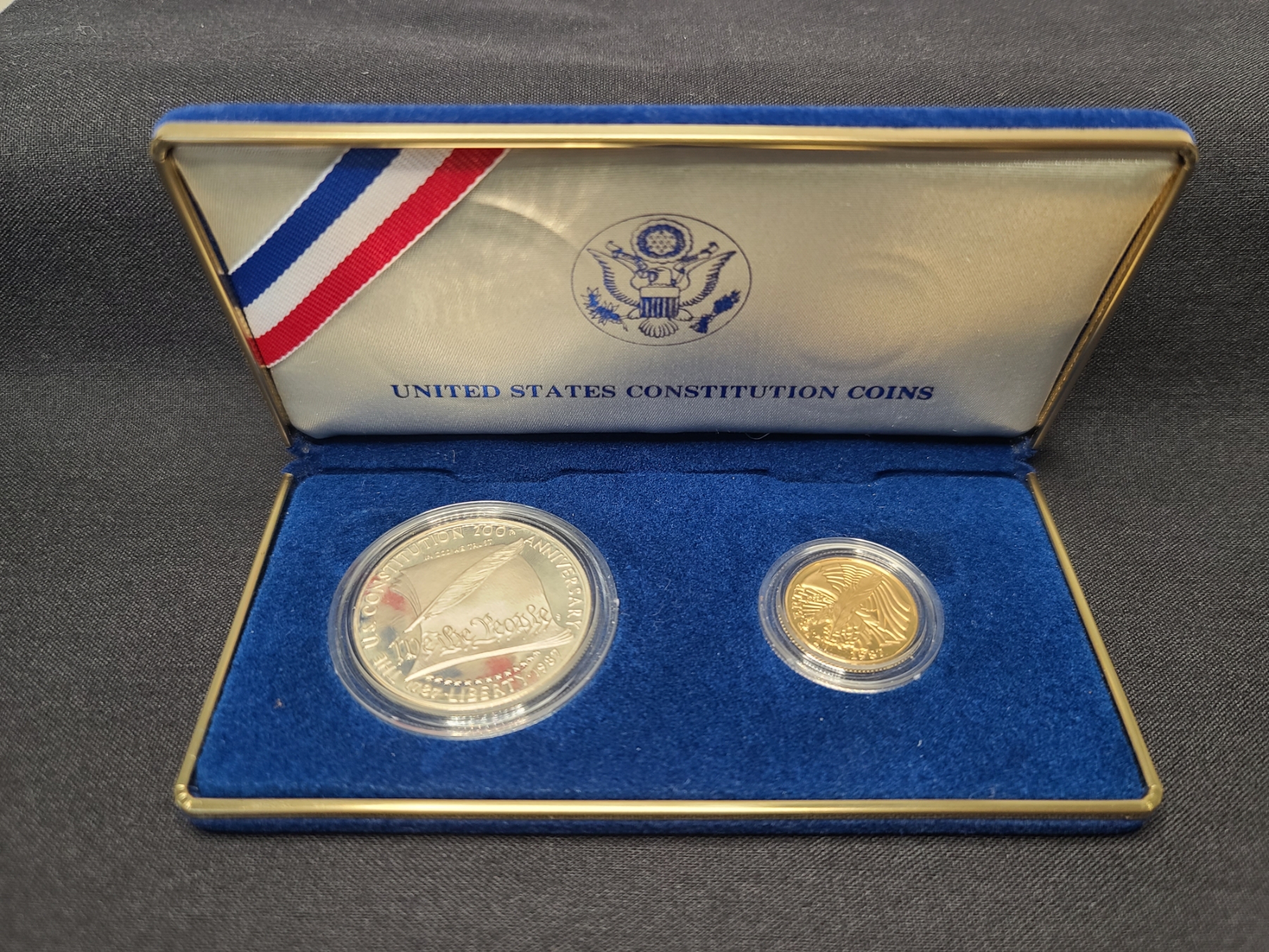 1987 United States Constitution Two Coin Set - 1987-W Gold $5 Coin (AGW: 0.2419oz) & 90% Silver 1987-S Constitution Dollar (ASW: 0.7734oz) - BOTH IN GREAT CONDITION!