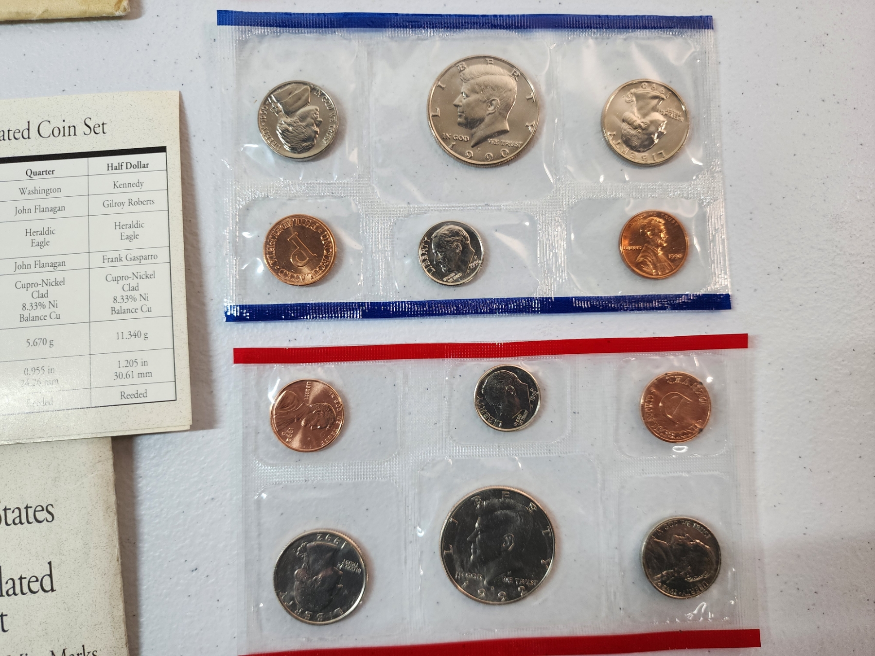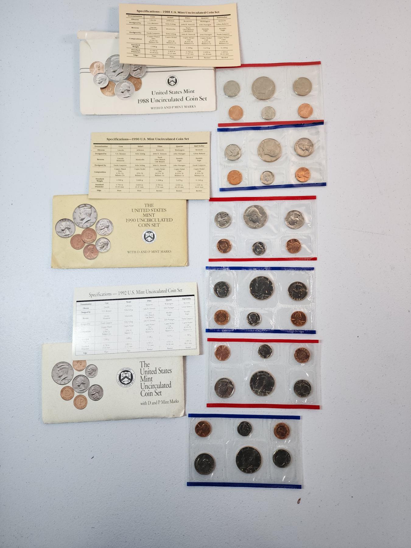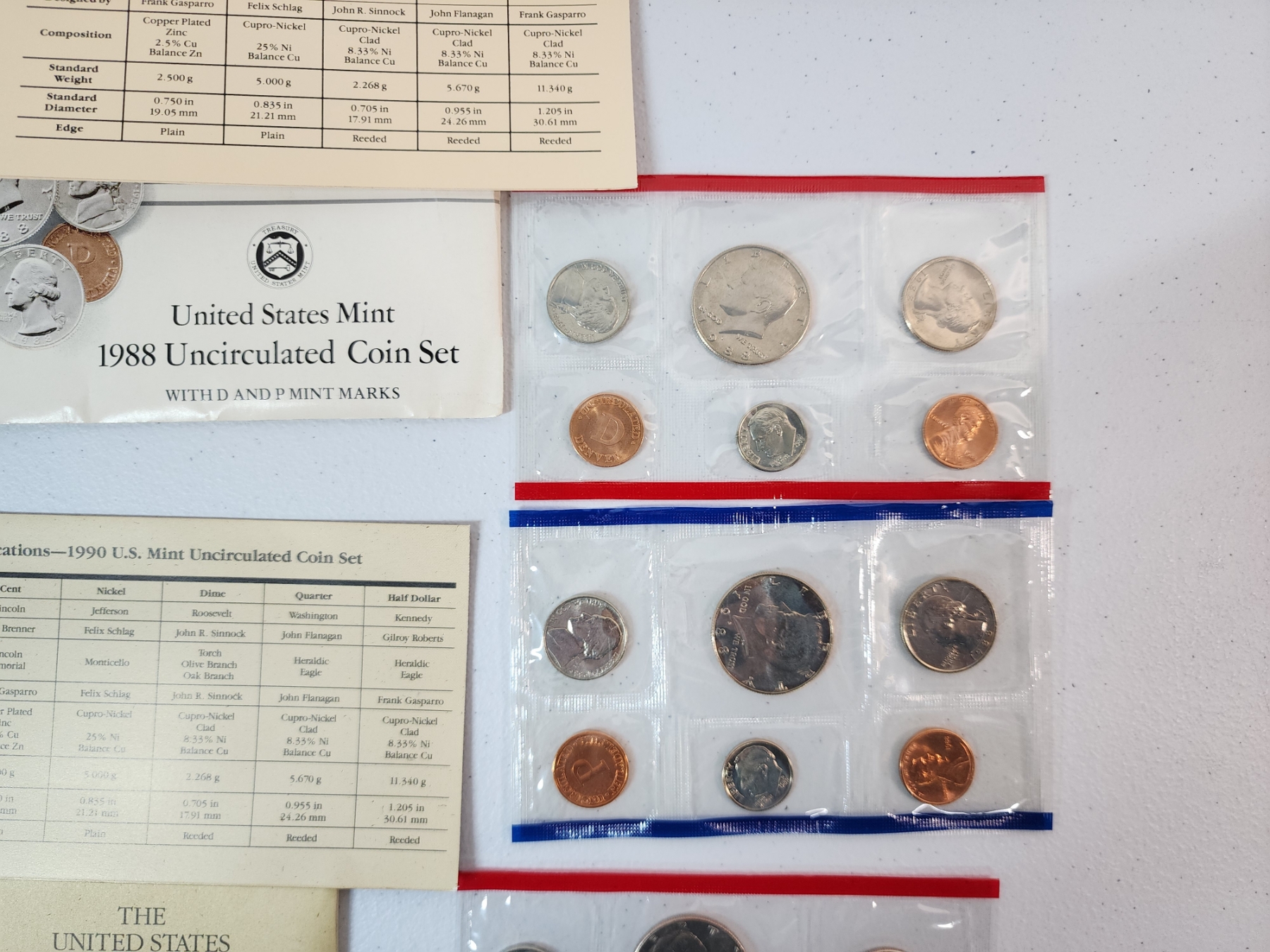 1988, 1990, and 1992 United States Uncirculated Coin Sets with COA